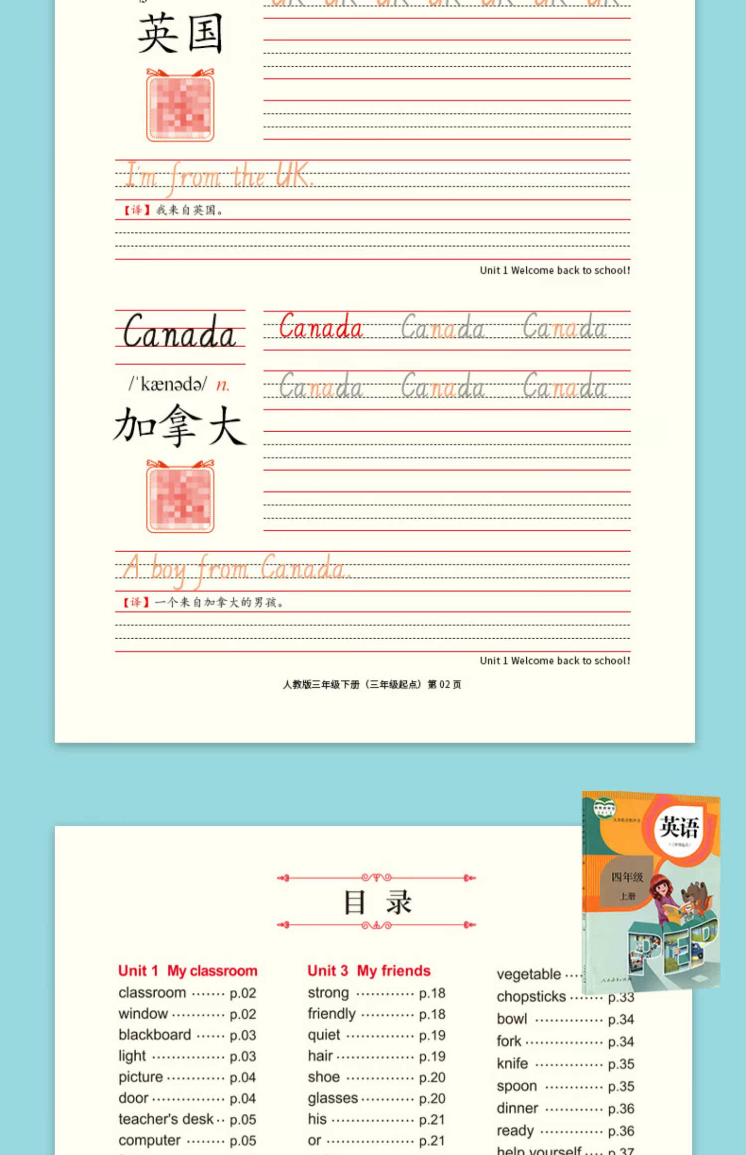 - Pep People's Education, версия для четвертого класса, том 1 (отсканируйте, чтобы прослушать аудио)