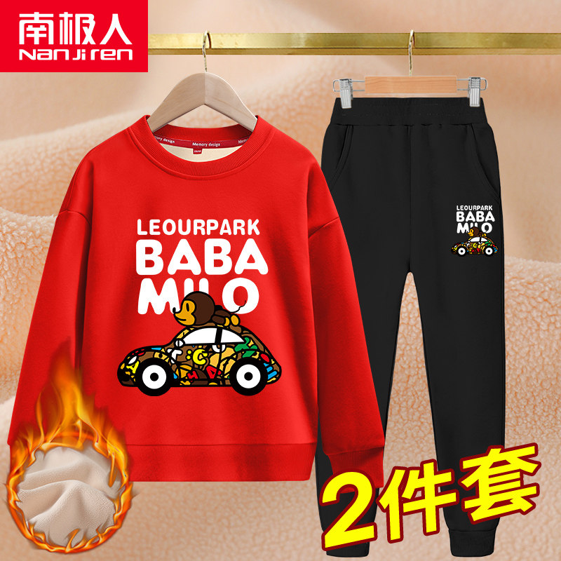 Детская утепленная толстовка для мальчиков, зимний комплект, подходит для подростков