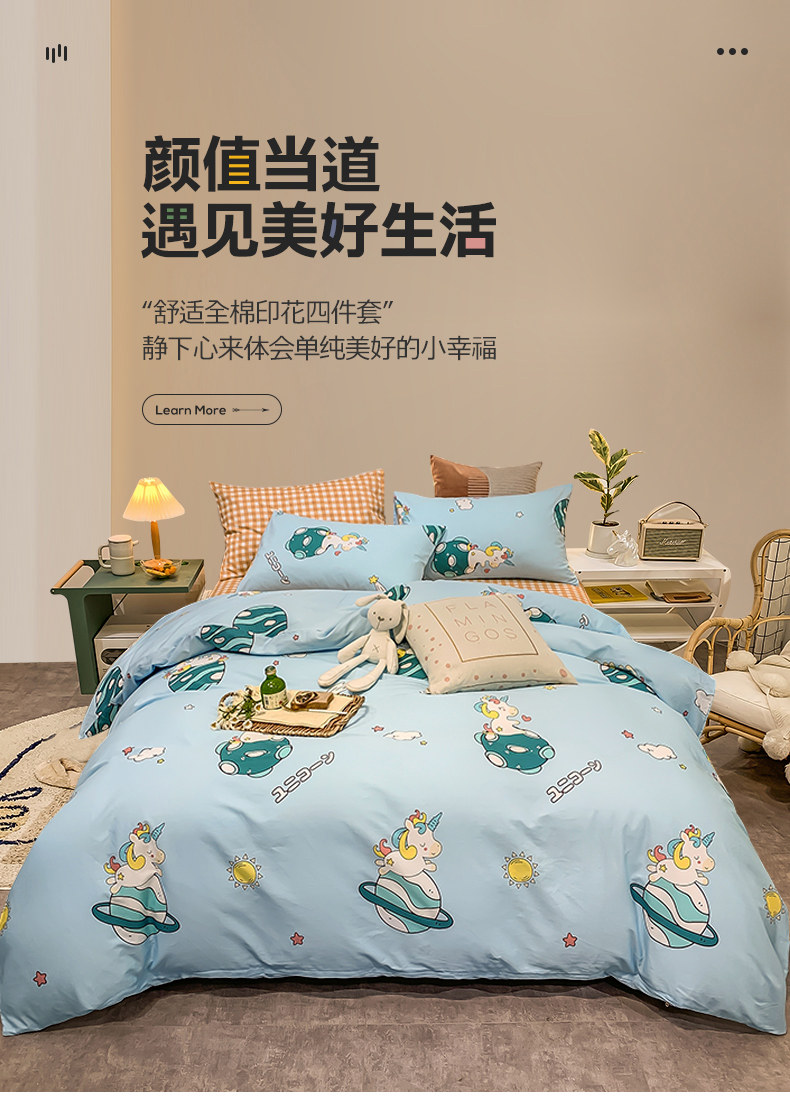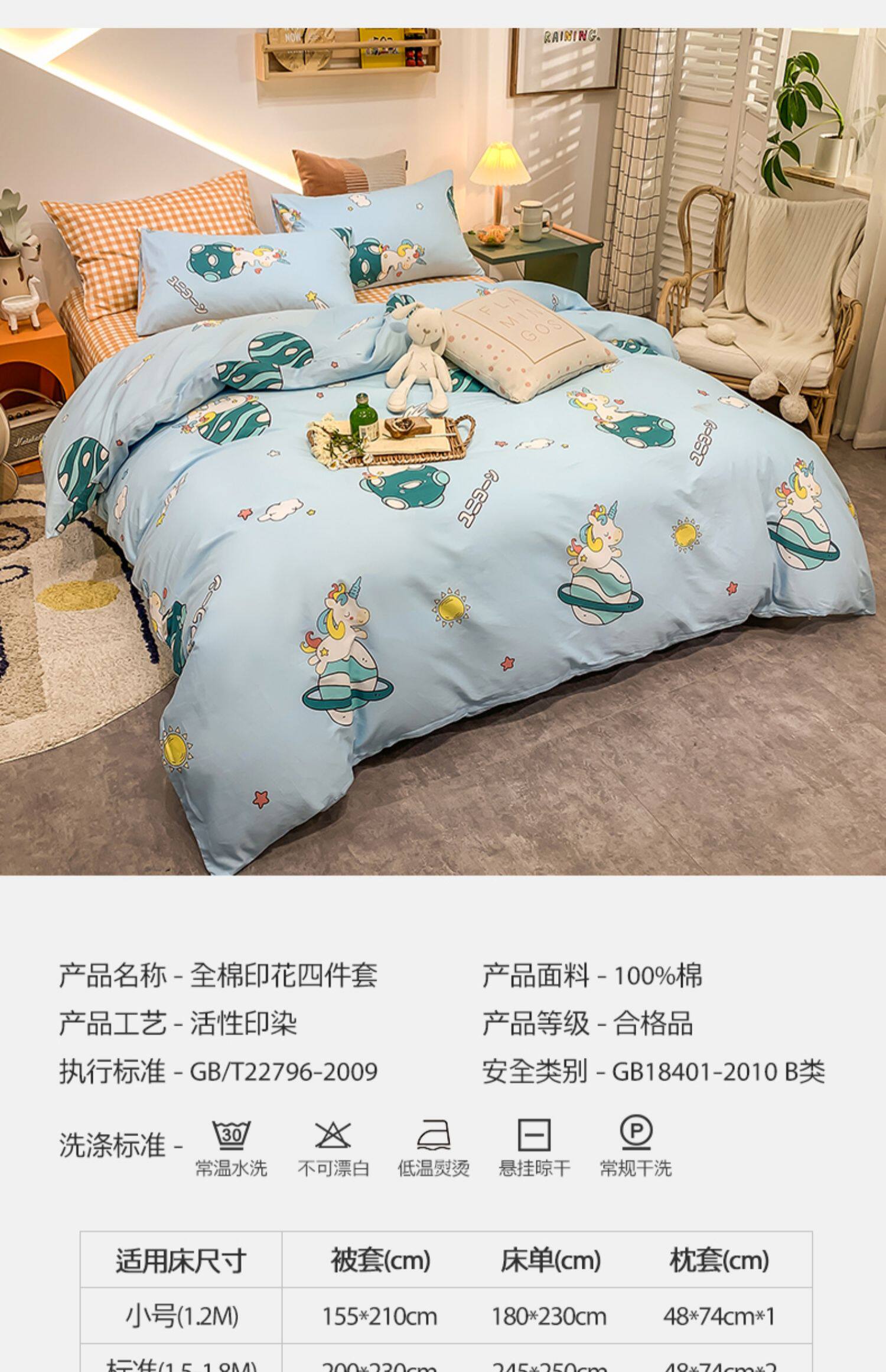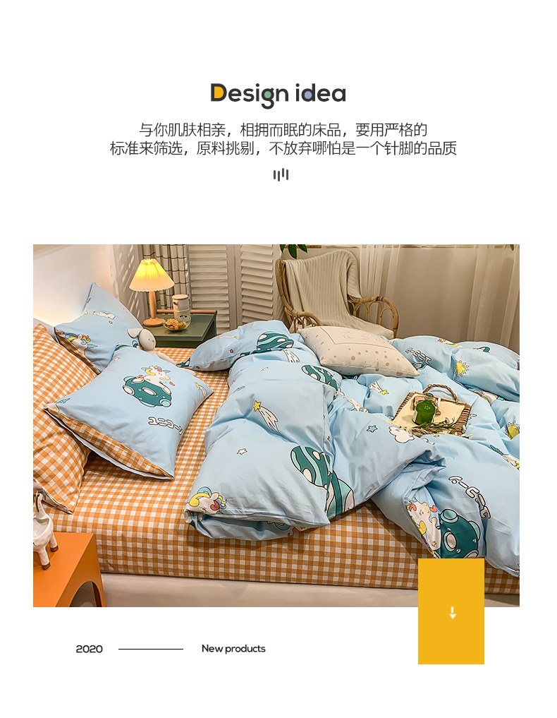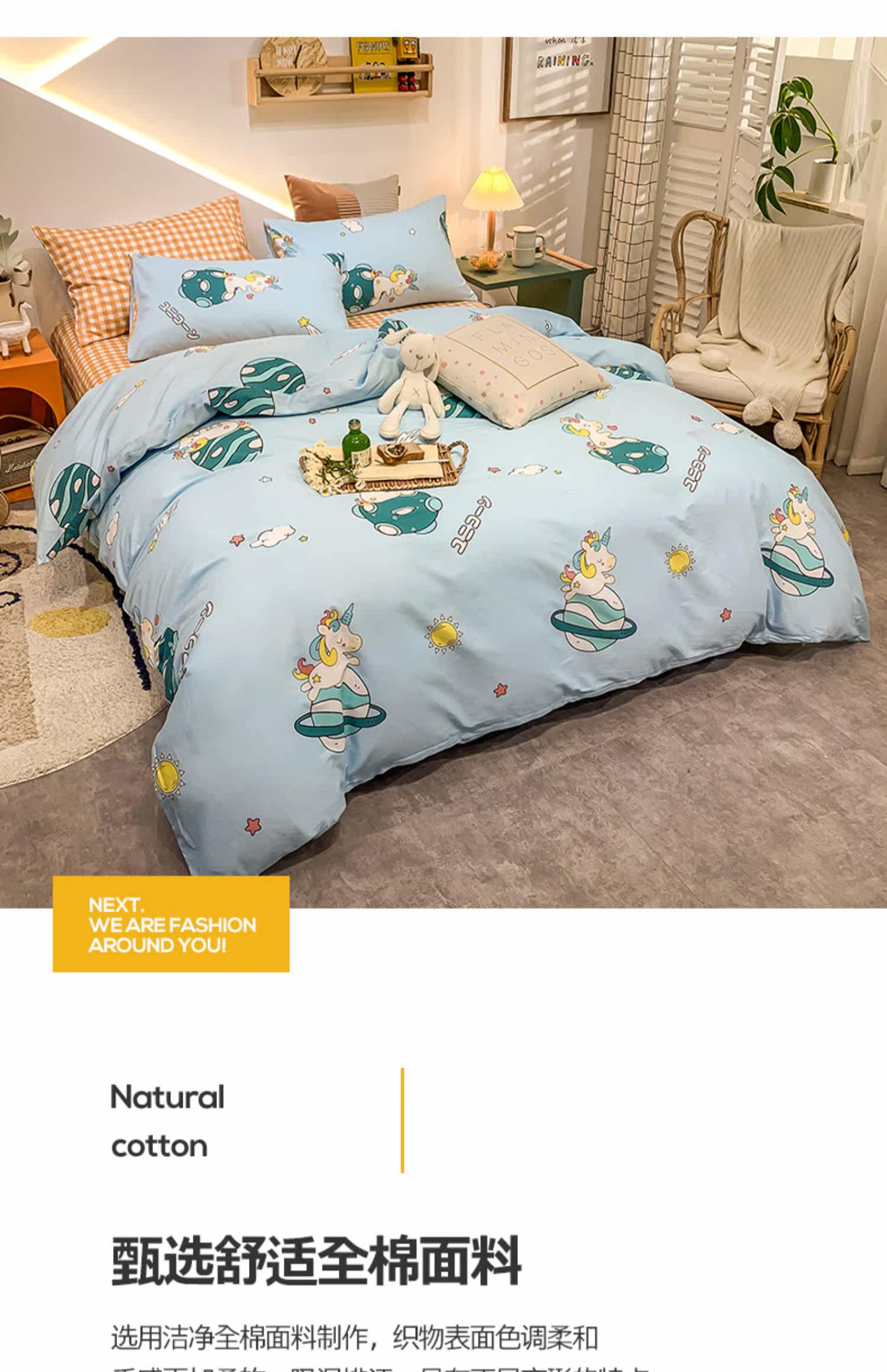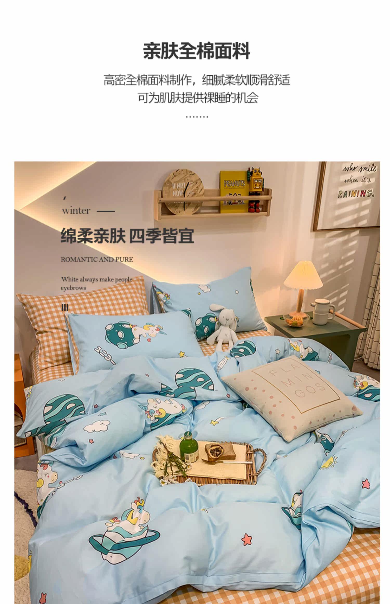 Мультяшный хлопковый брендовый комплект для школьников и студентов, милый пододеяльник, 4 предмета, 3 предмета