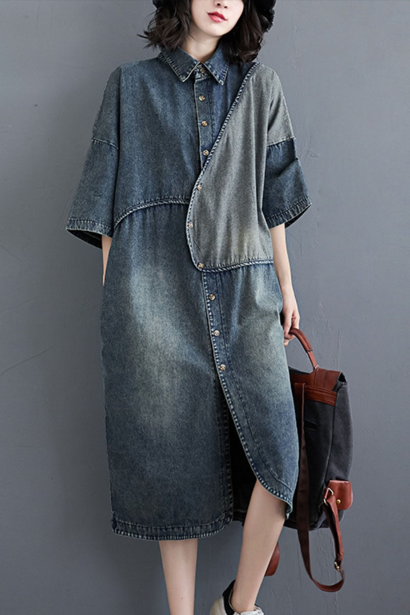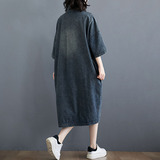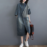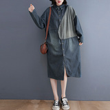 Весенняя ретро длинная рубашка, джинсовое платье, большой размер, длина миди, средней длины, свободный крой