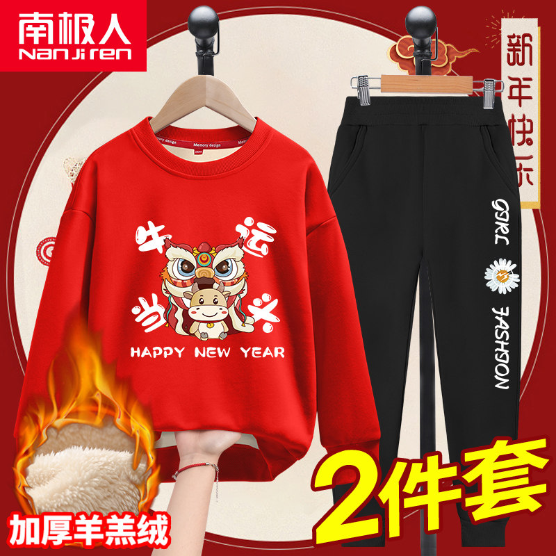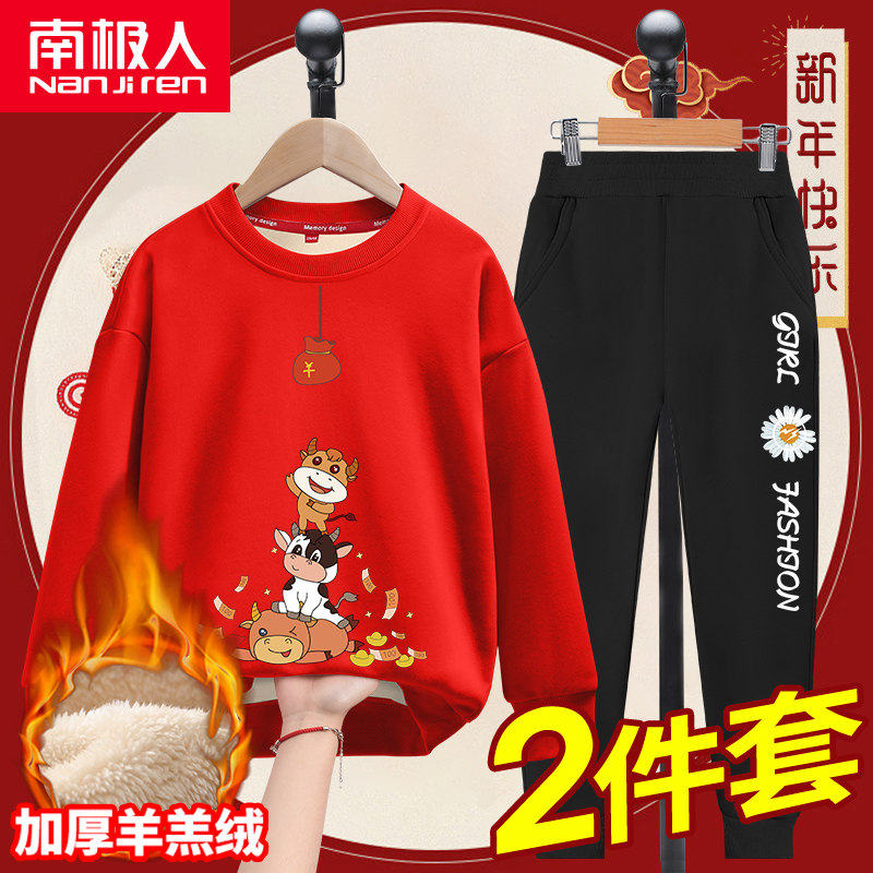 Утепленная детская зимняя красная утепленная толстовка, осенний демисезонный комплект, в западном стиле, подходит для подростков