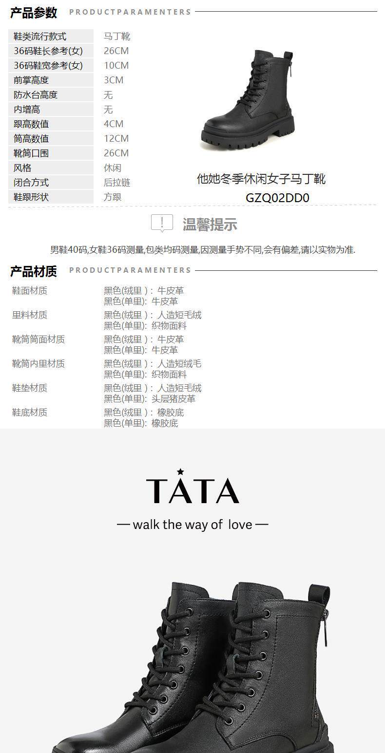 Tata/He и ее зимняя стойка 2020 года та же модная площадь и универсальные модные ботинки для женщин GZQ02DD0