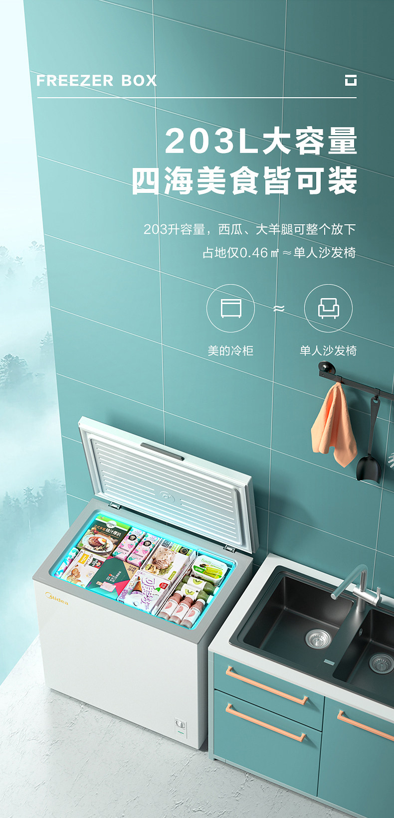 Midea 203 -Литер небольшой морозильник мебель небольшой холодный шкаф замороженный холодильник.