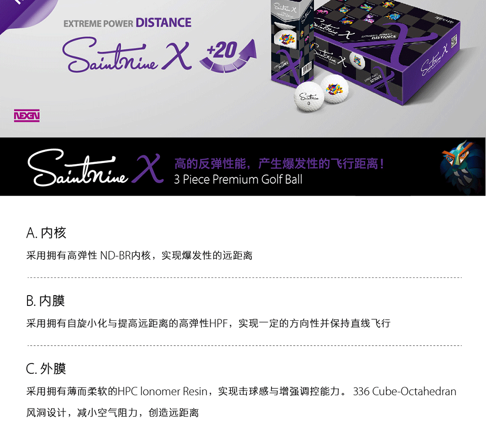 Новый продукт Saintnine x гольф -гольф -тройник Ball Superbar Ball Ball Long Distamp