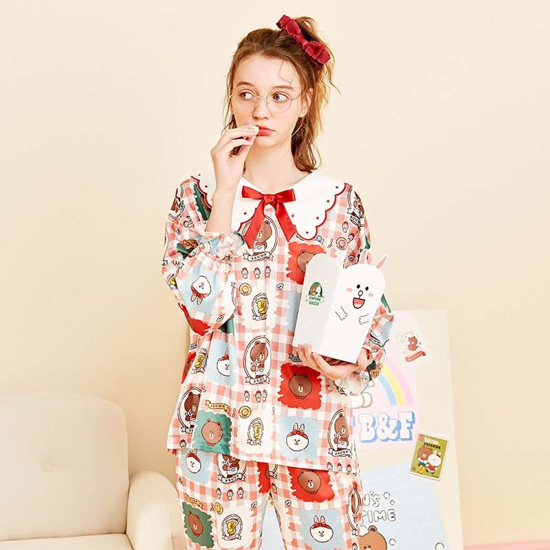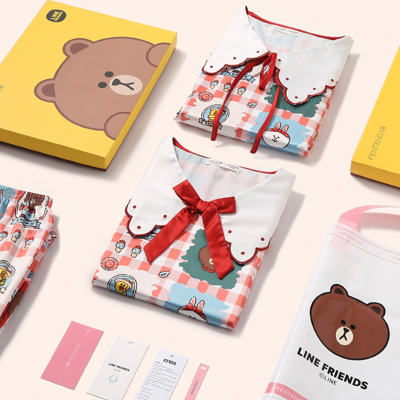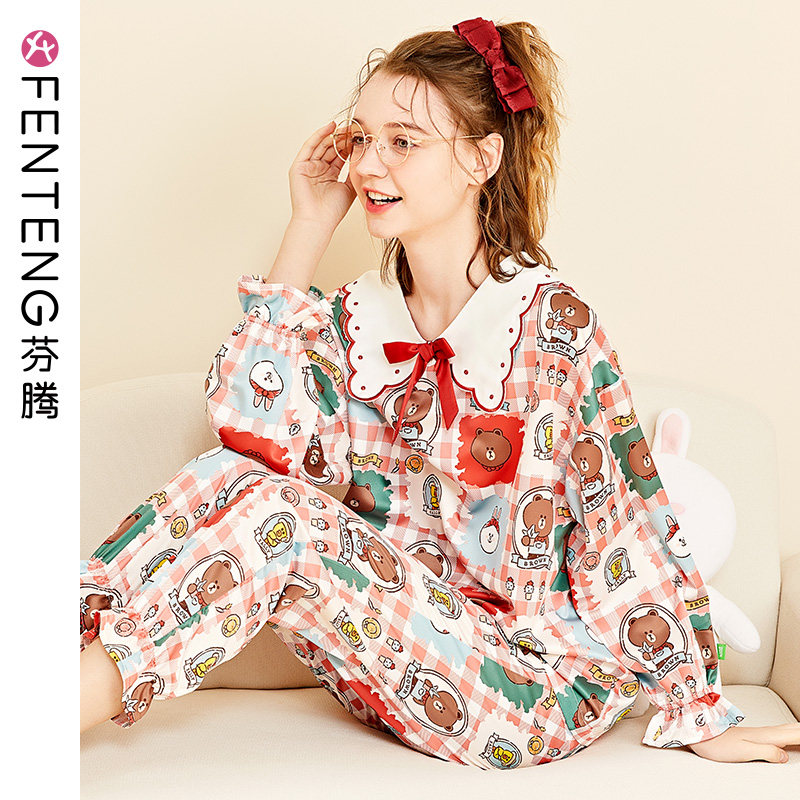 芬腾 Шелковый лонгслив, осенняя демисезонная пижама, мультяшный комплект