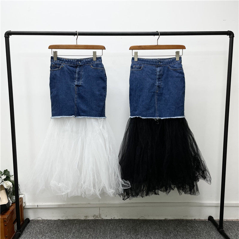 Дизайнерская длинная джинсовая юбка, тренд сезона, высокая талия, А-силуэт
