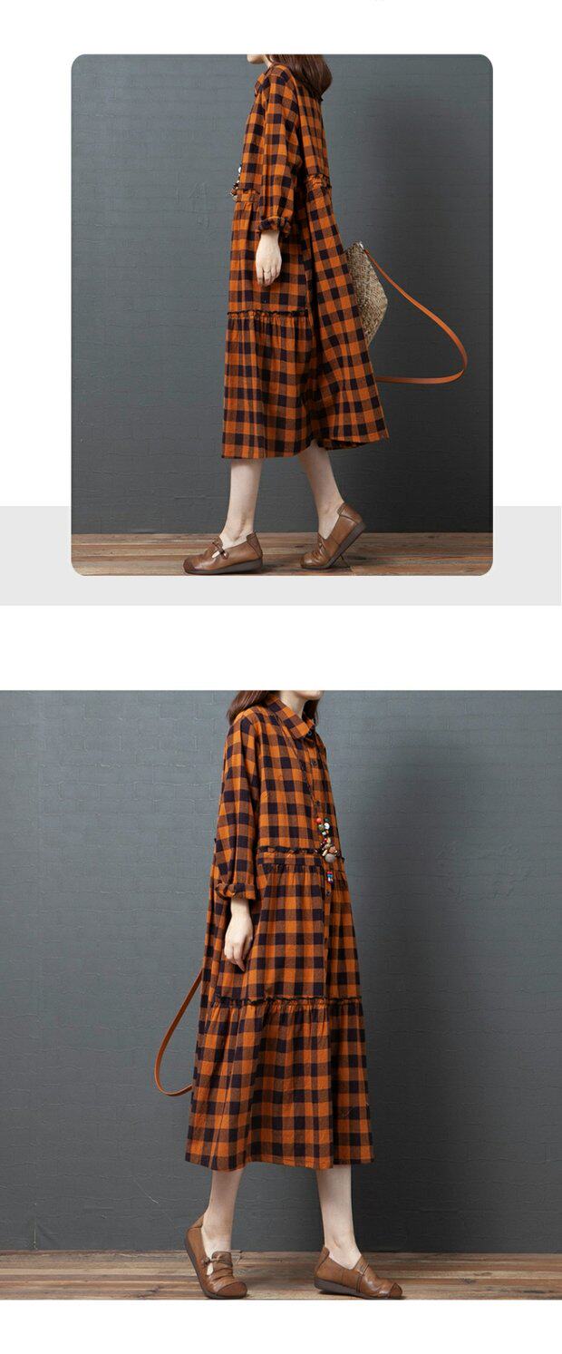Осенний длинный лонгслив для отдыха, платье, коллекция 2021, в корейском стиле, по фигуре, большой размер, средней длины, из хлопка и льна
