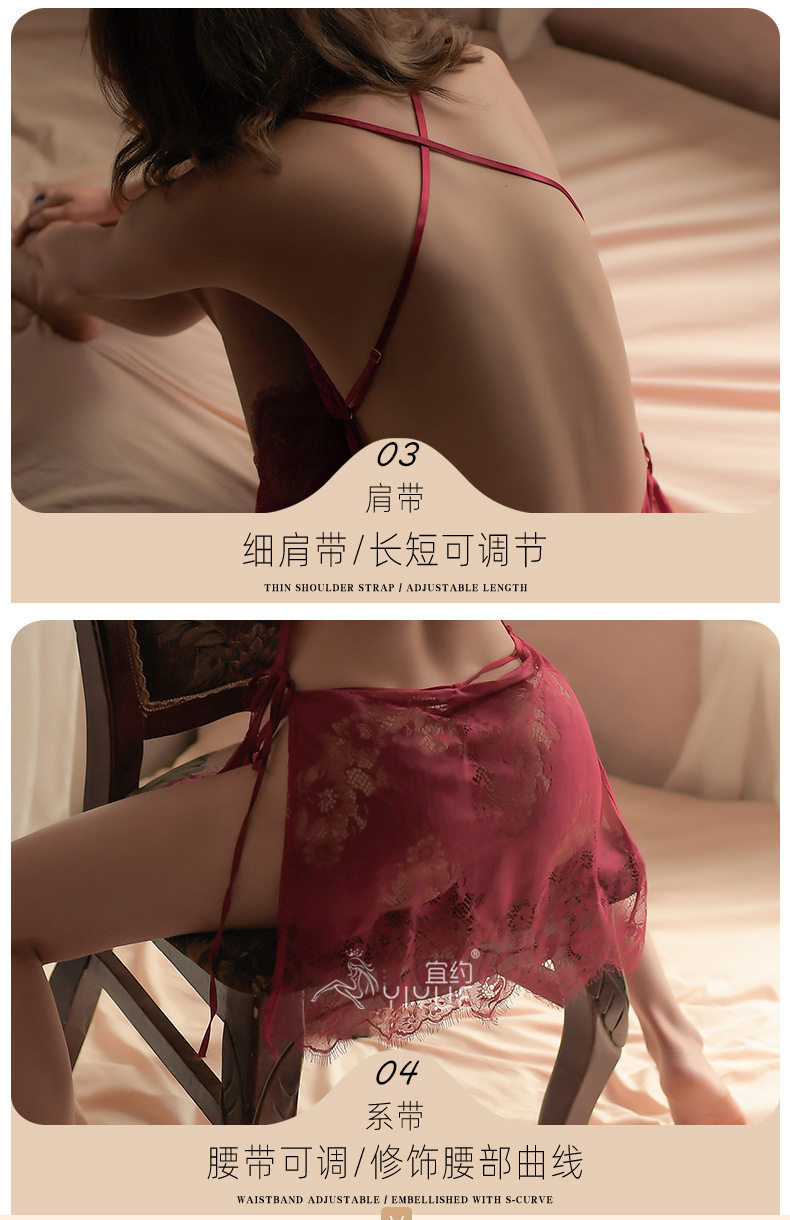 Сексуальное нижнее белье, кружевное платье, мини-юбка, комплект, с открытой спиной