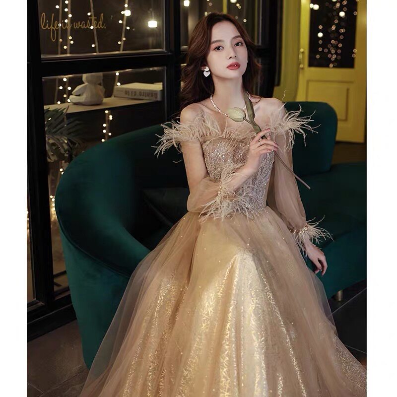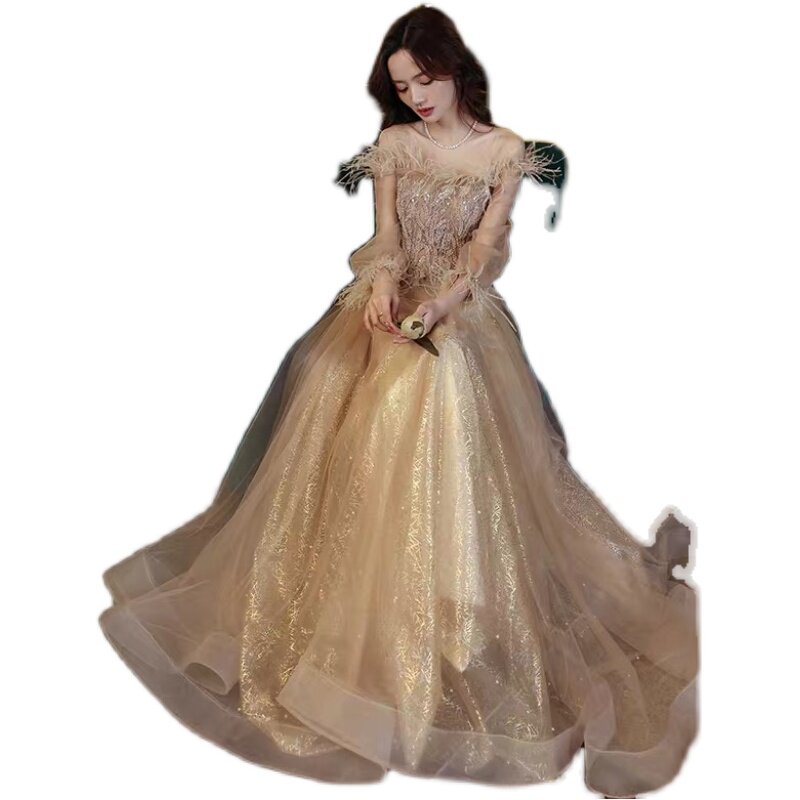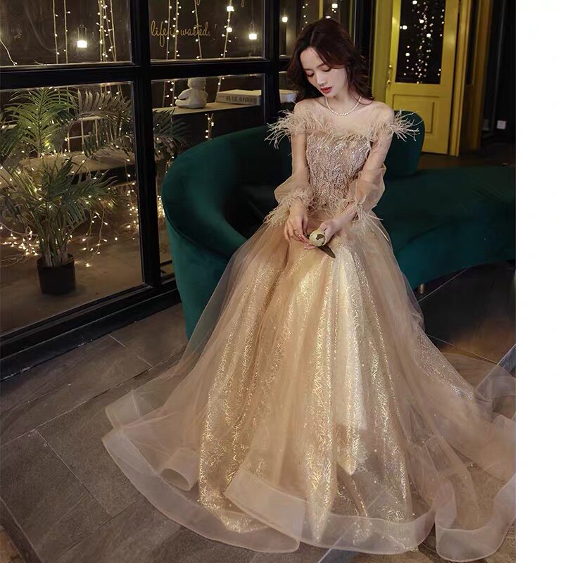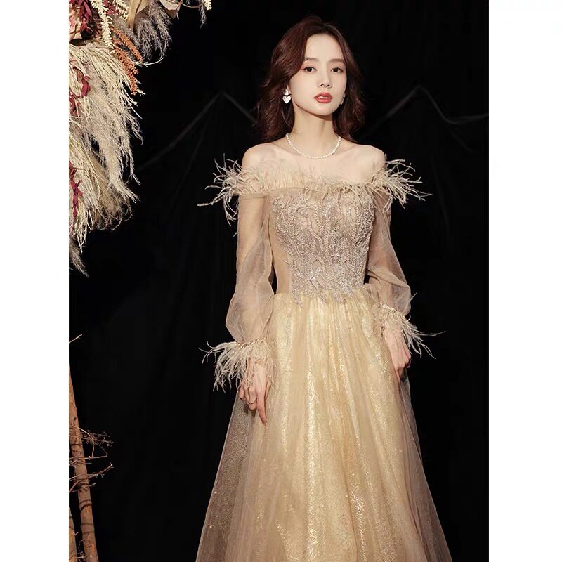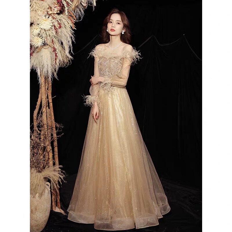 Вечернее платье, зимняя элегантная юбка, цвета шампанского, коллекция 2021