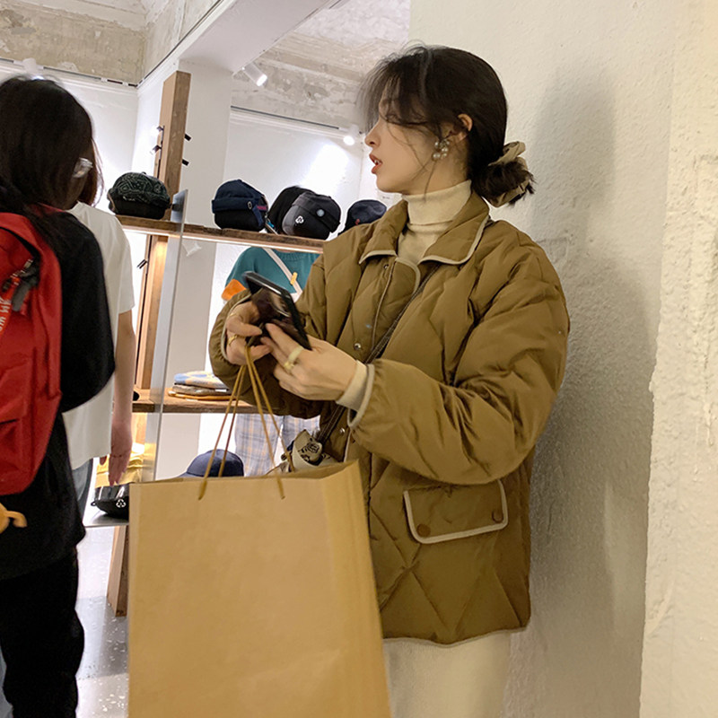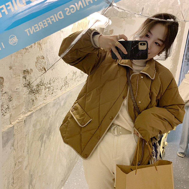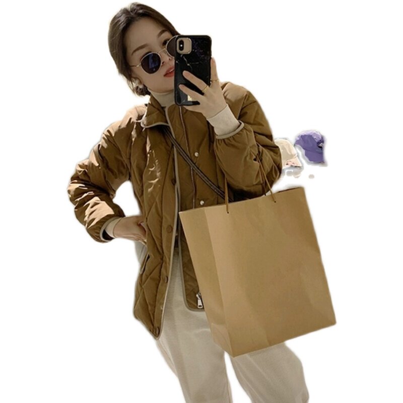 Короткий зимний пуховик с ромбовидным узором, бархатная легкая и тонкая куртка, в корейском стиле, подходит для подростков, утиный пух