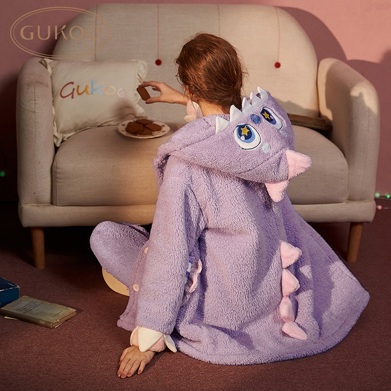 Gukoo/果壳 Демисезонная коралловая пижама, мультяшный бархатный комплект