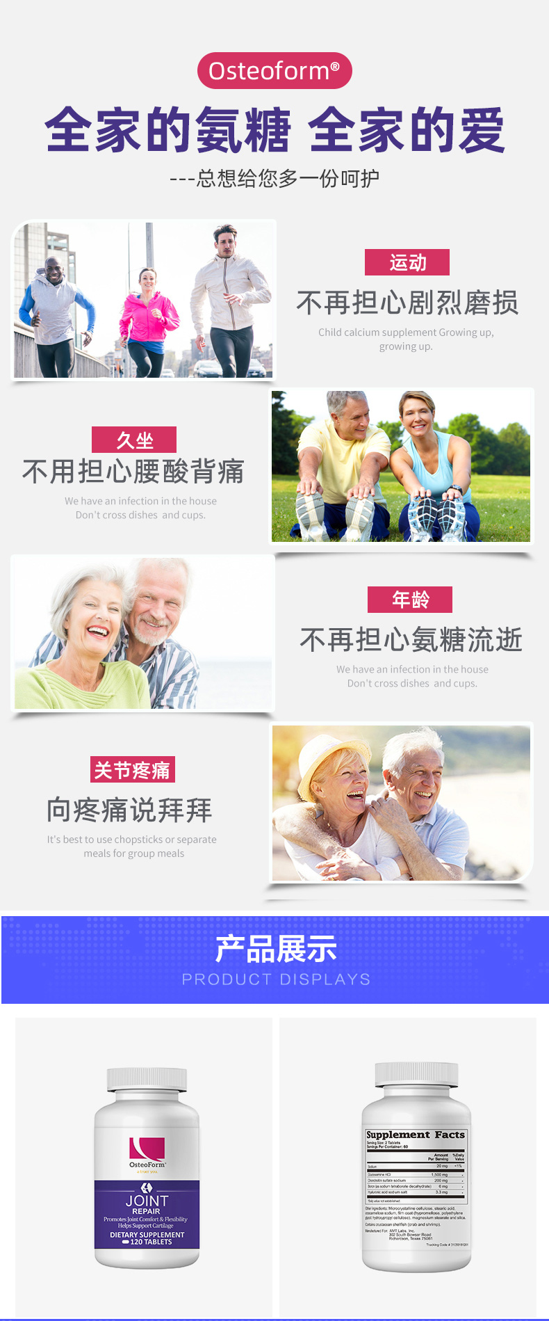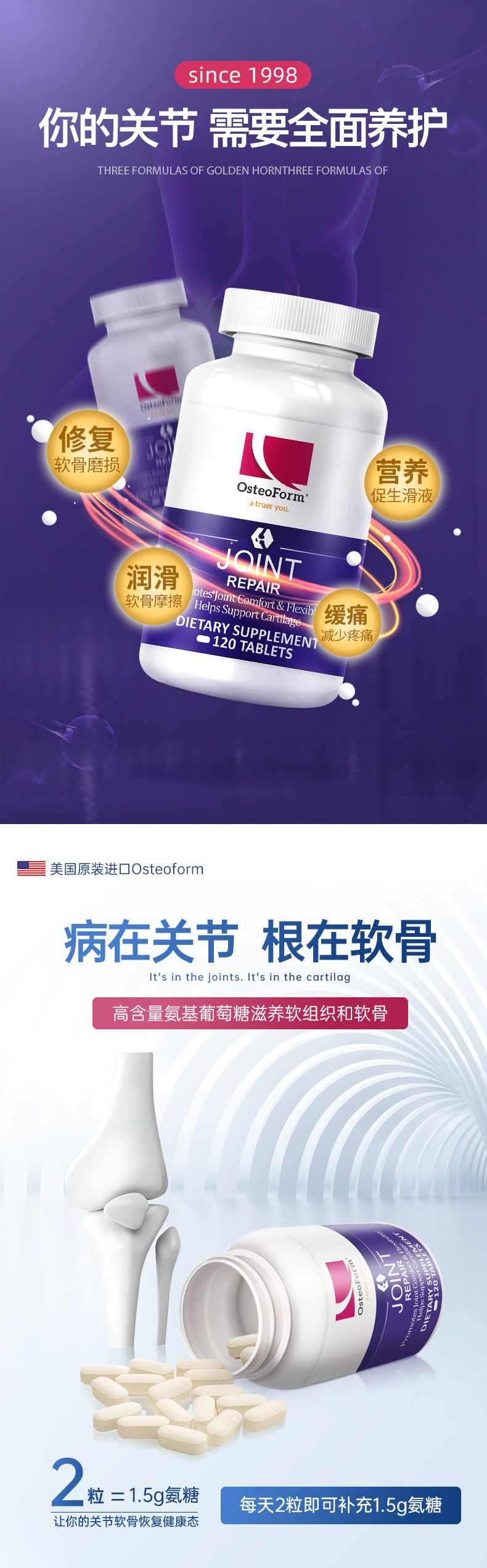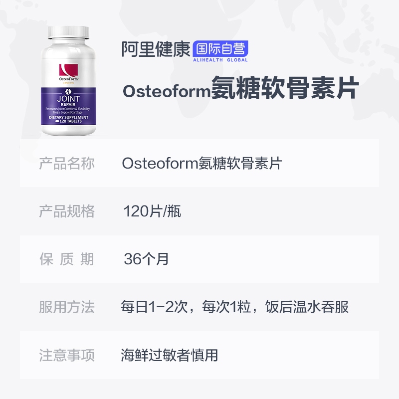 Остеоформ, амино -амин глюкоза, амино -серная сера серная кислота таблетки витамин 120 таблетки/бутылка