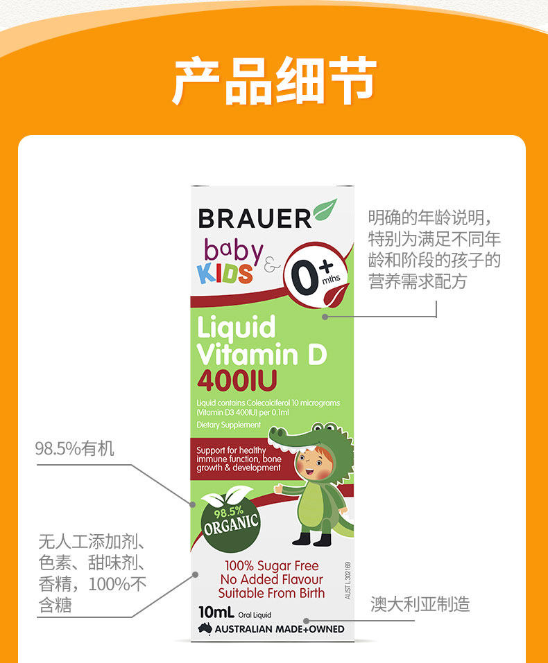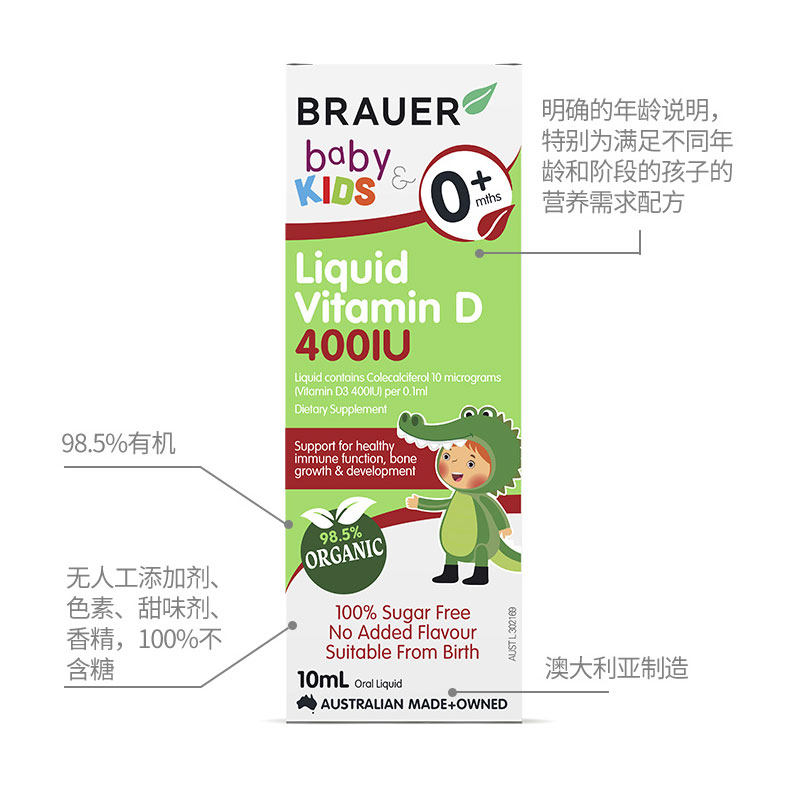 Brauer Капли для младенца, детский витаминизированный кальций, 10 мл