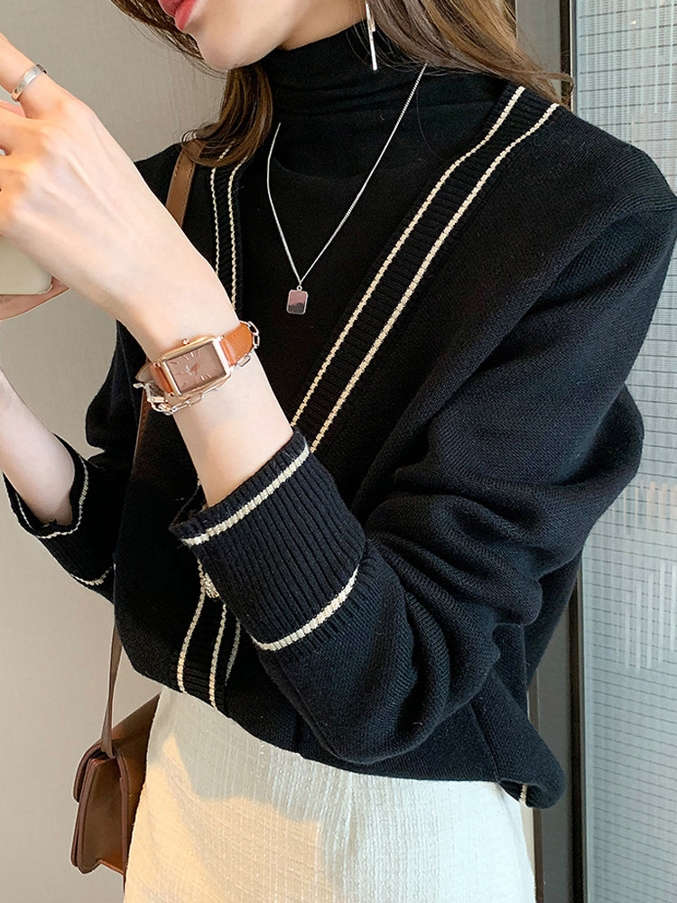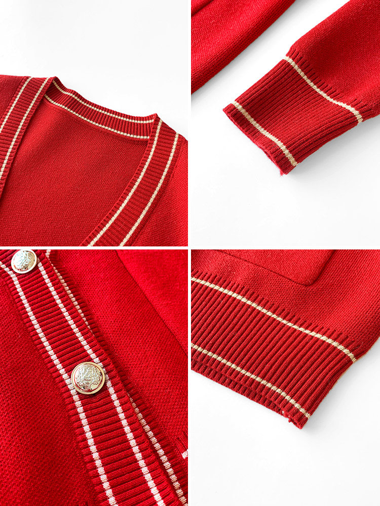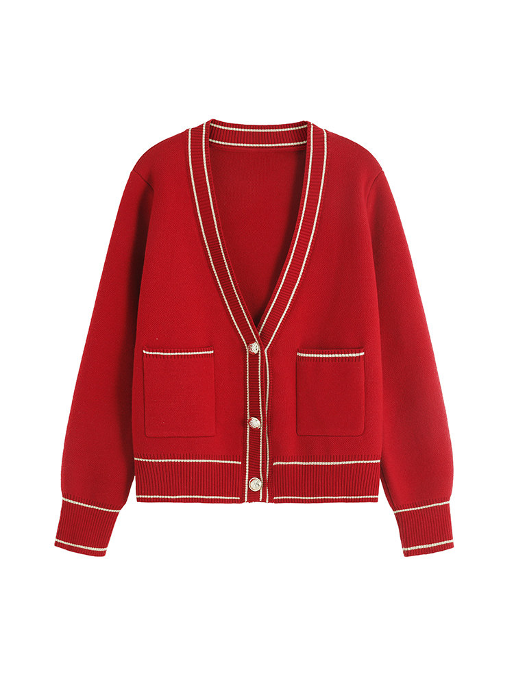 Демисезонный кардиган, ретро красный свитер, куртка, 2023, увеличенная толщина, в корейском стиле, V-образный вырез