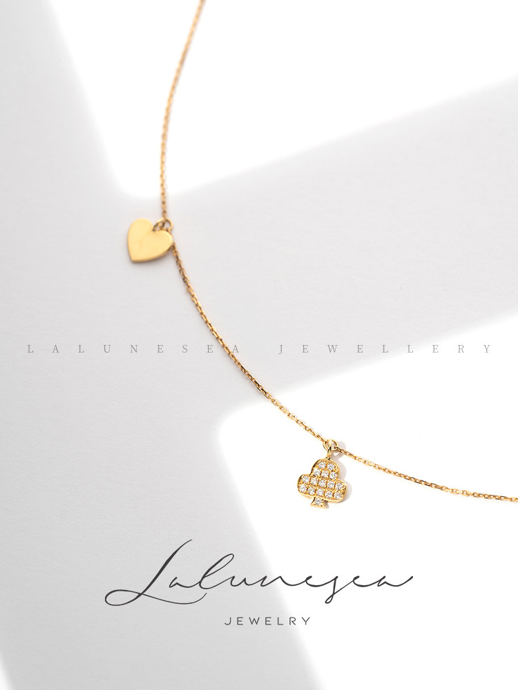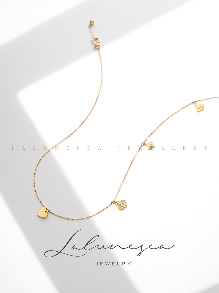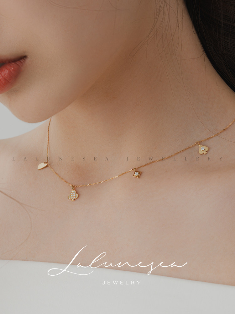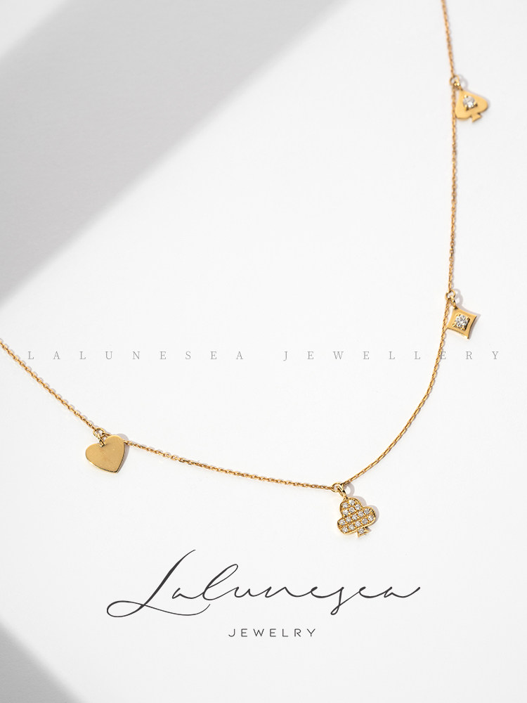Золотые модные бриллиантовые игральные карты, подвеска, регулируемое ожерелье, цепочка до ключиц, 18 карат