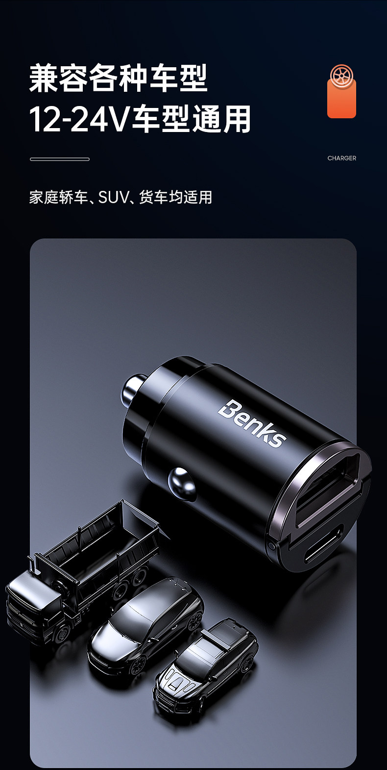 Автомобильное зарядное устройство Benks для быстрой зарядки Apple PD, быстрая зарядка прикуривателя, USB-разъем, один на две машины