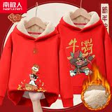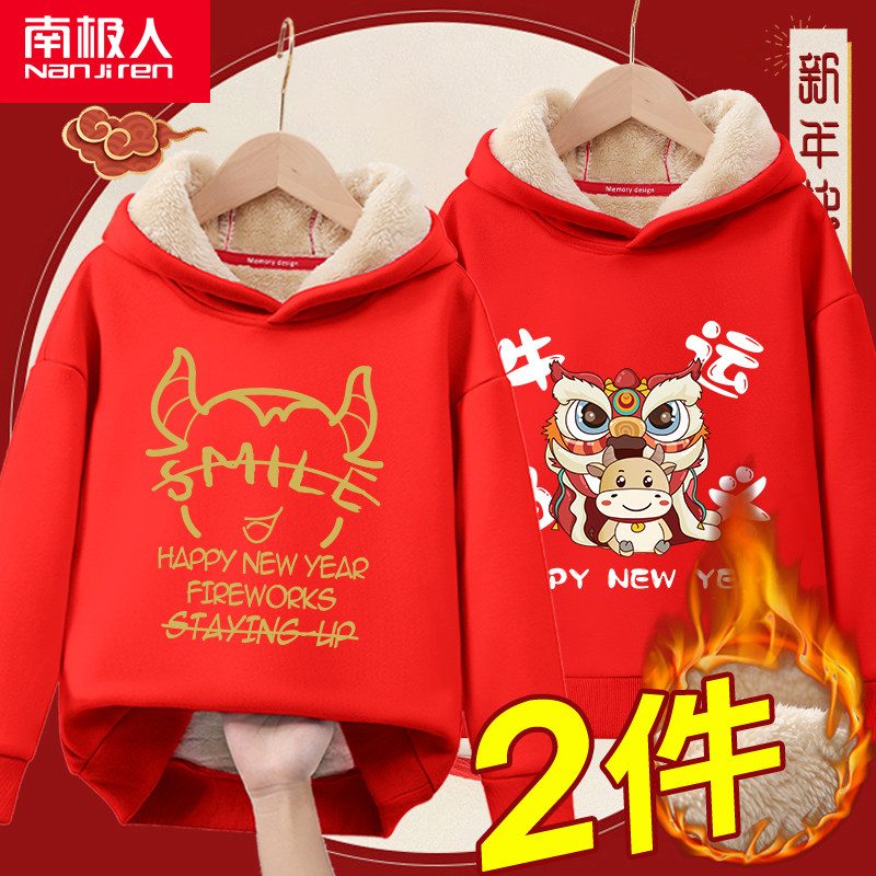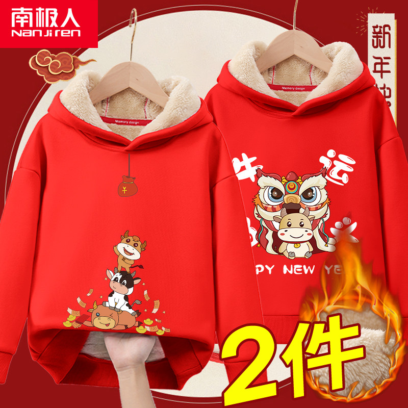 Детская демисезонная бархатная красная утепленная толстовка для мальчиков, коллекция 2021, подходит для подростков