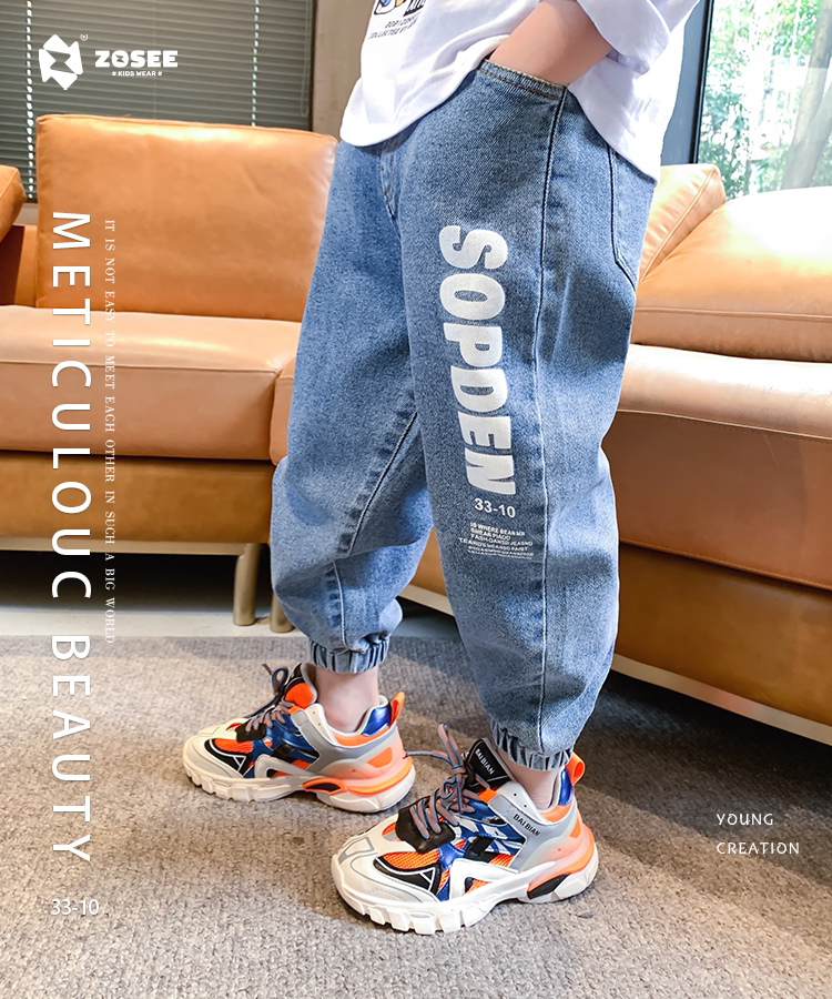 左西 Джинсы для мальчиков, детские осенние штаны, подходит для подростков, коллекция 2021, в западном стиле