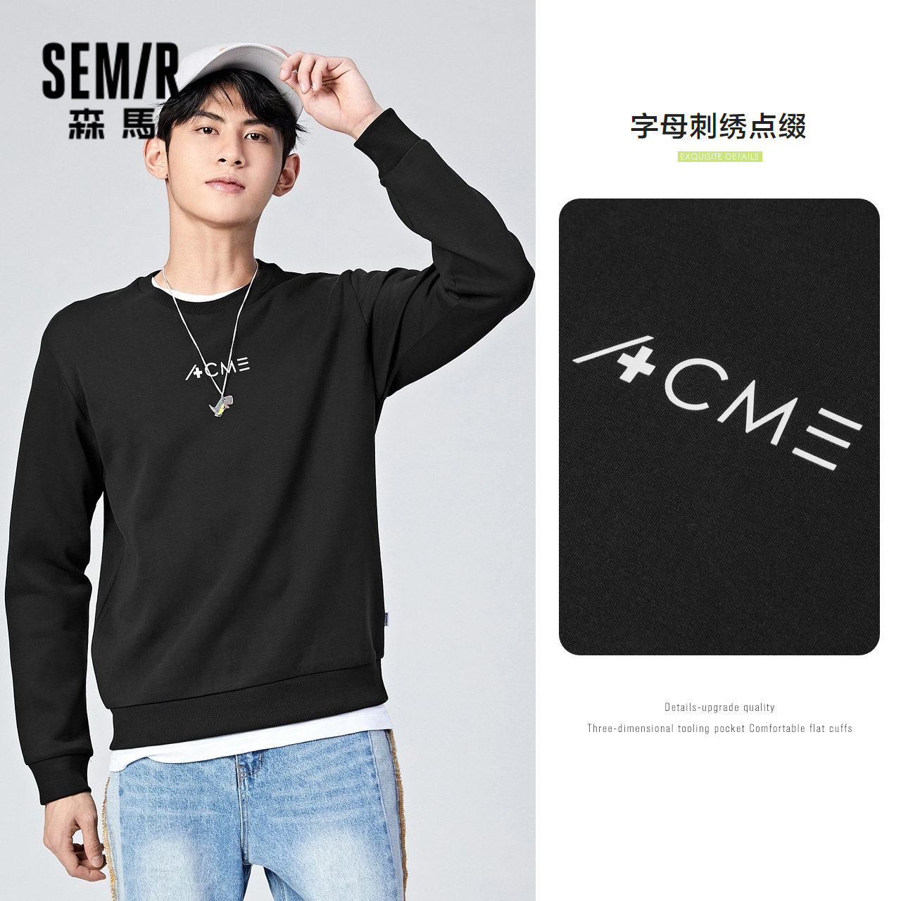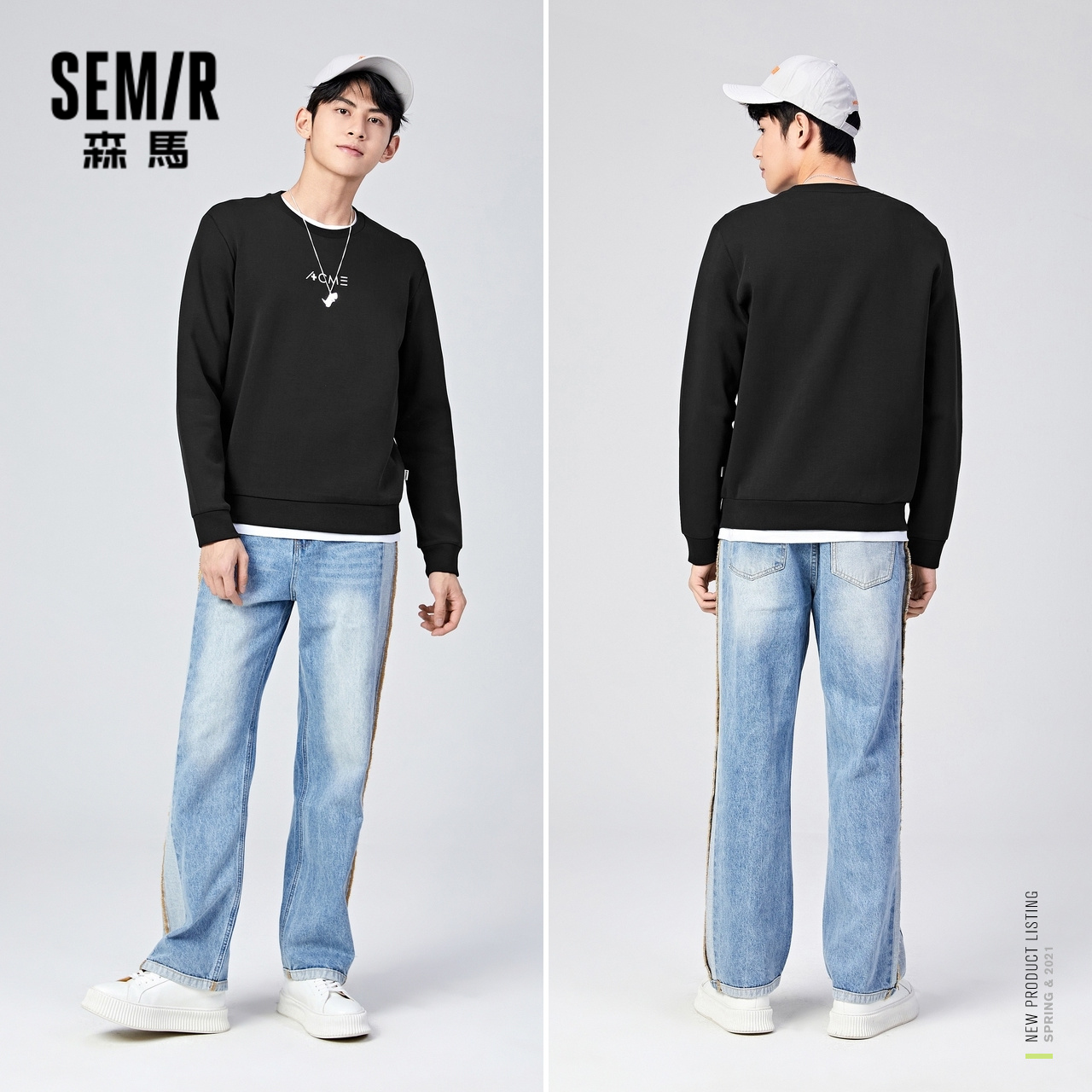 Semir, весенняя трендовая брендовая толстовка, коллекция 2021, тренд сезона, круглый воротник, в корейском стиле