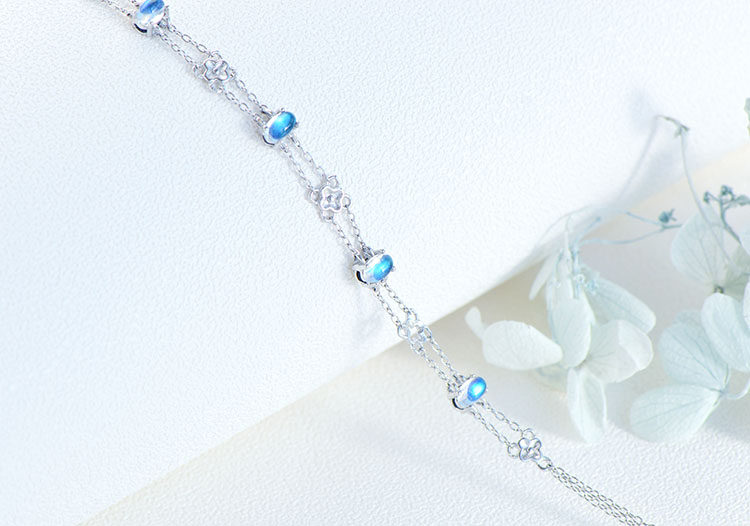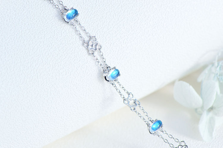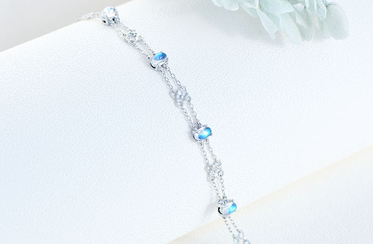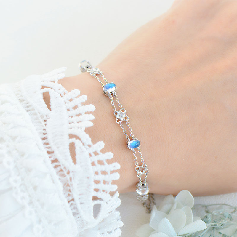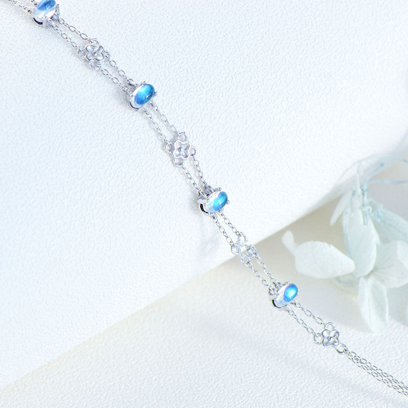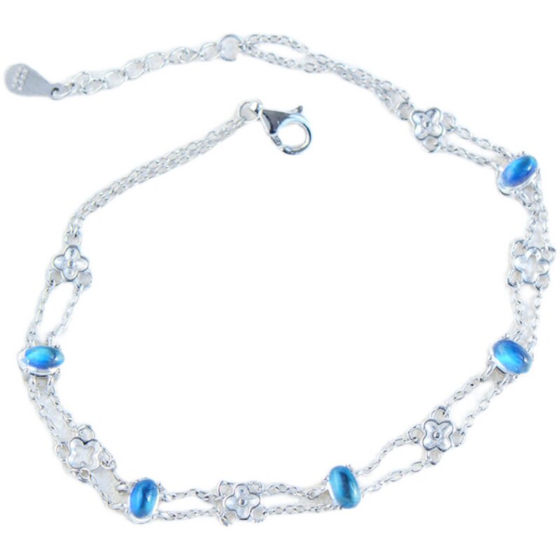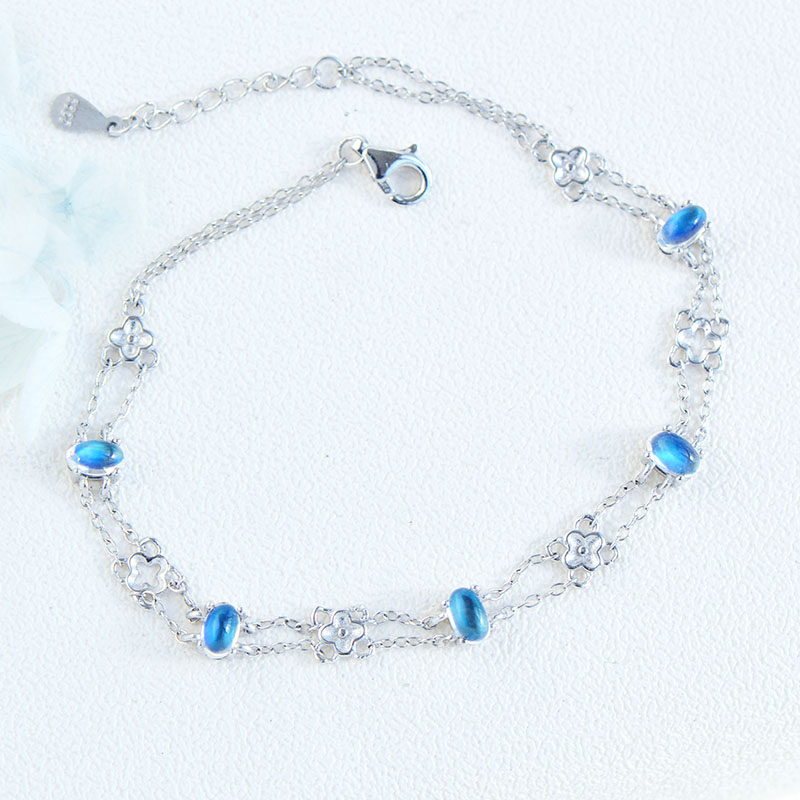 Браслет из натурального камня, натуральная вода, кварц, лунный камень, серебро 925 пробы, четырехлистный клевер, легкий роскошный стиль, с драгоценным камнем, подарок на день рождения