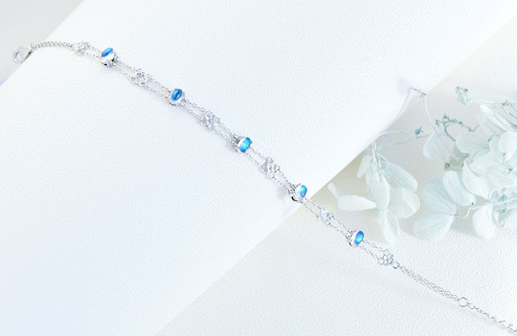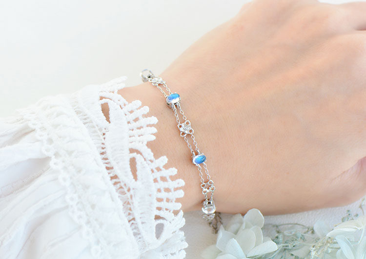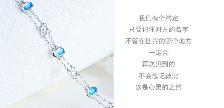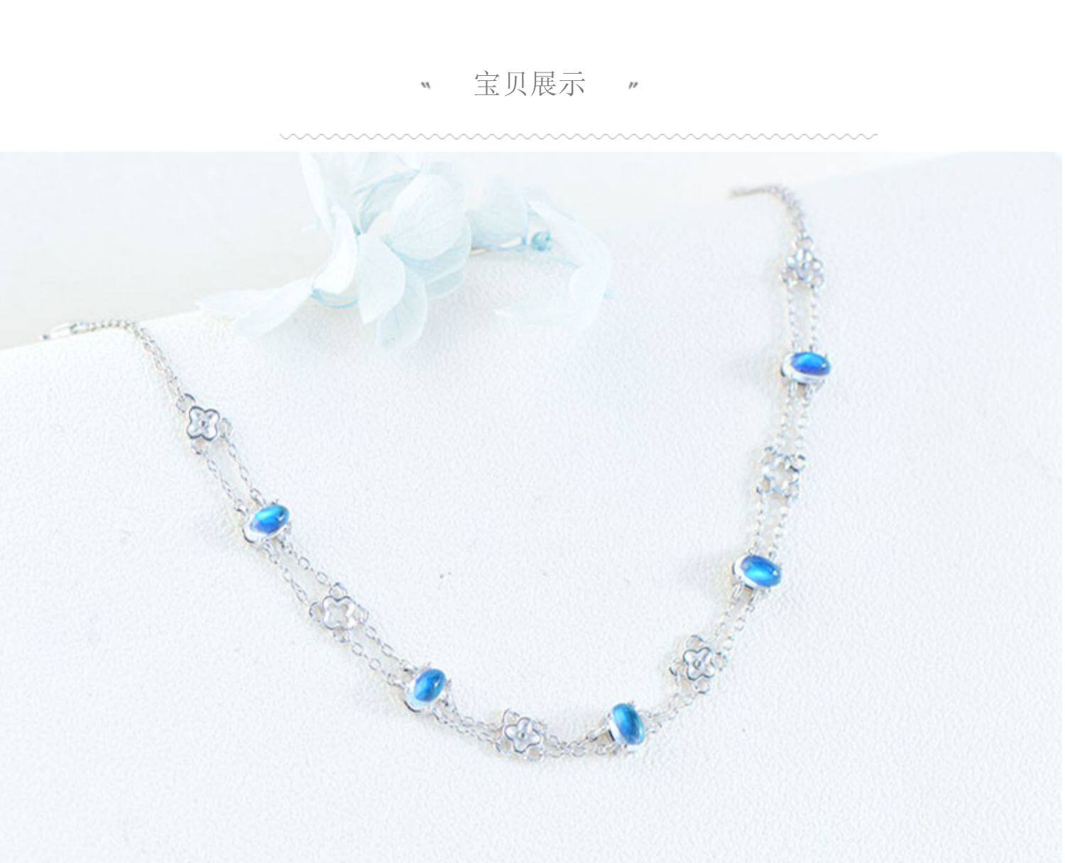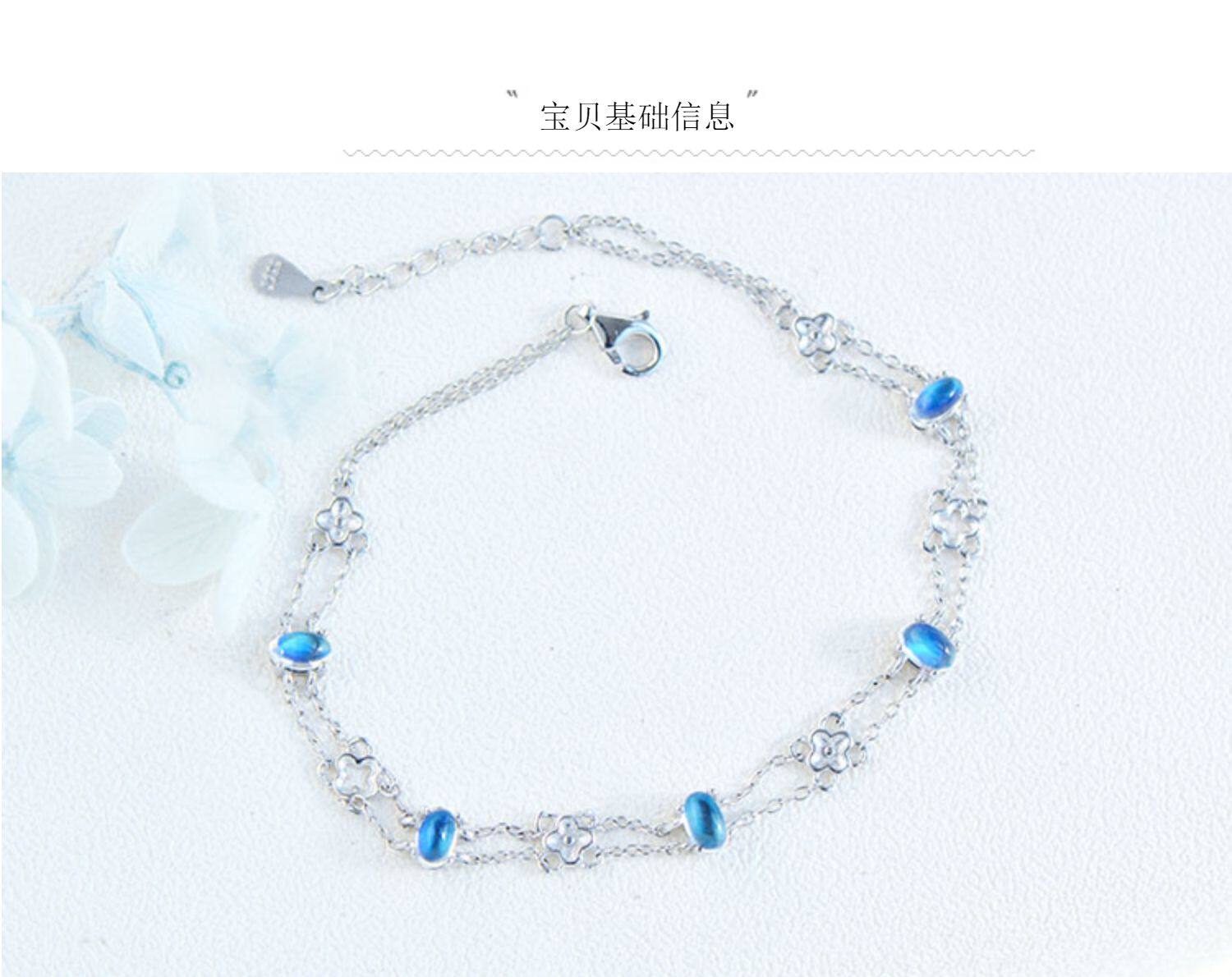 Браслет из натурального камня, натуральная вода, кварц, лунный камень, серебро 925 пробы, четырехлистный клевер, легкий роскошный стиль, с драгоценным камнем, подарок на день рождения