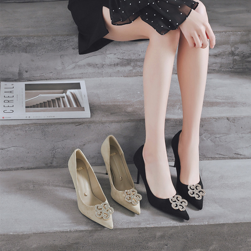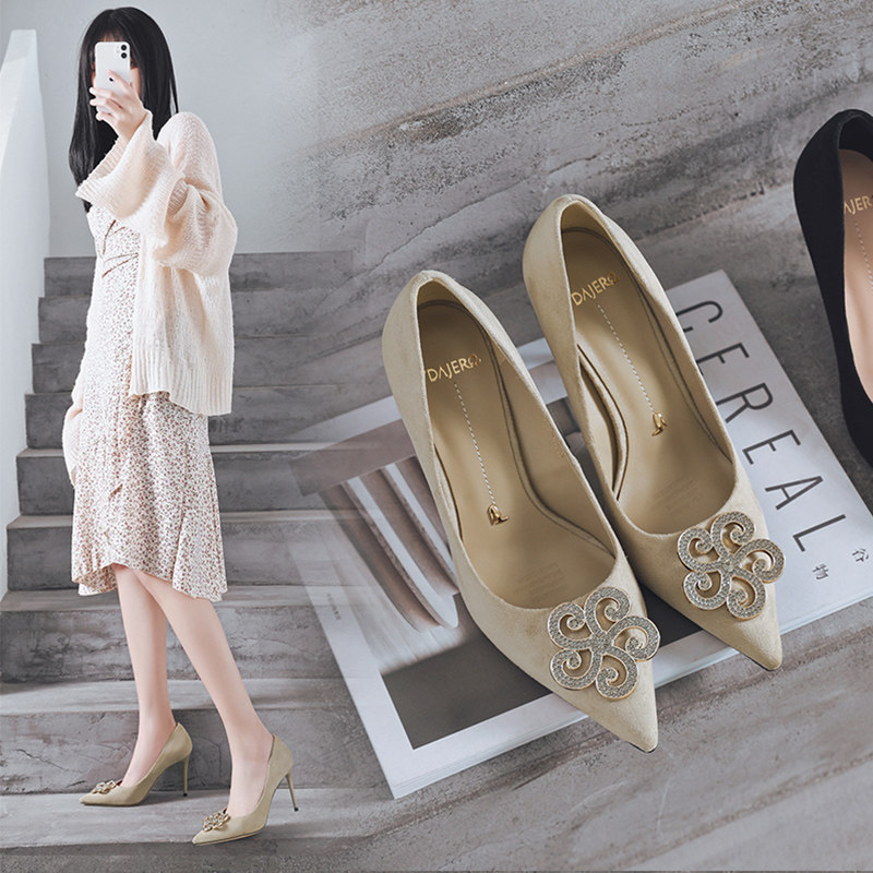 一代佳人 Замшевые универсальные туфли на высоком каблуке с низким вырезом, коллекция 2021, тренд сезона