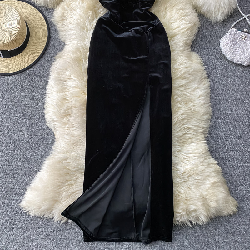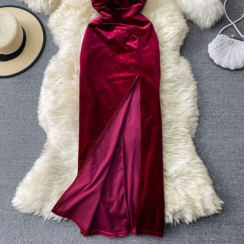 Ретро бархатный приталенный топ без лямок, вечернее платье, эффект подтяжки, V-образный вырез