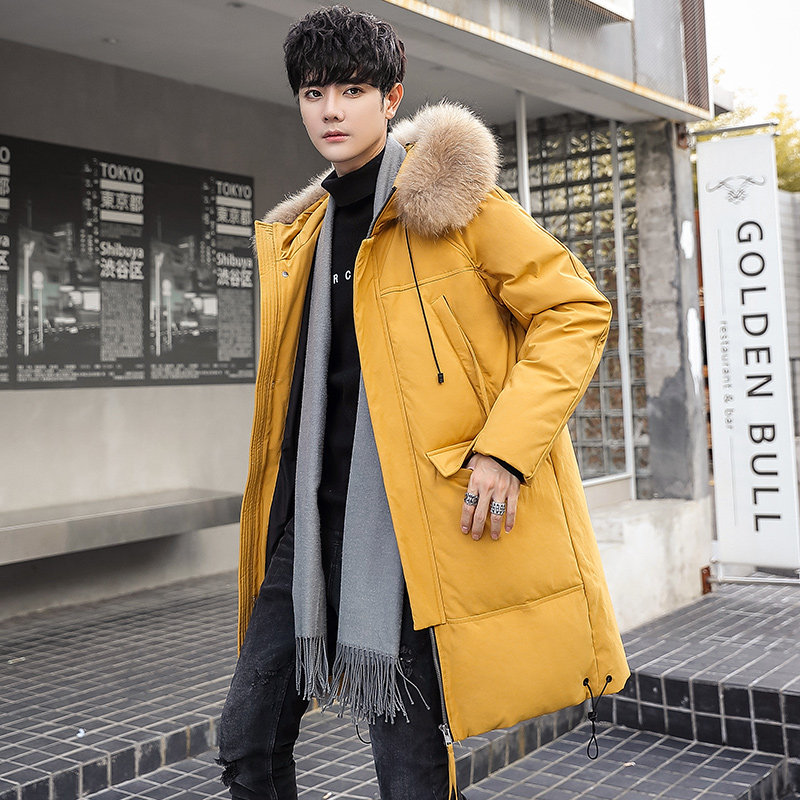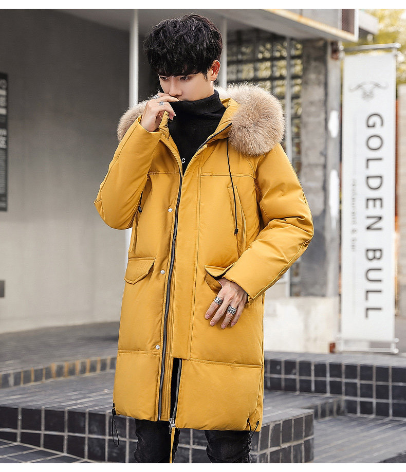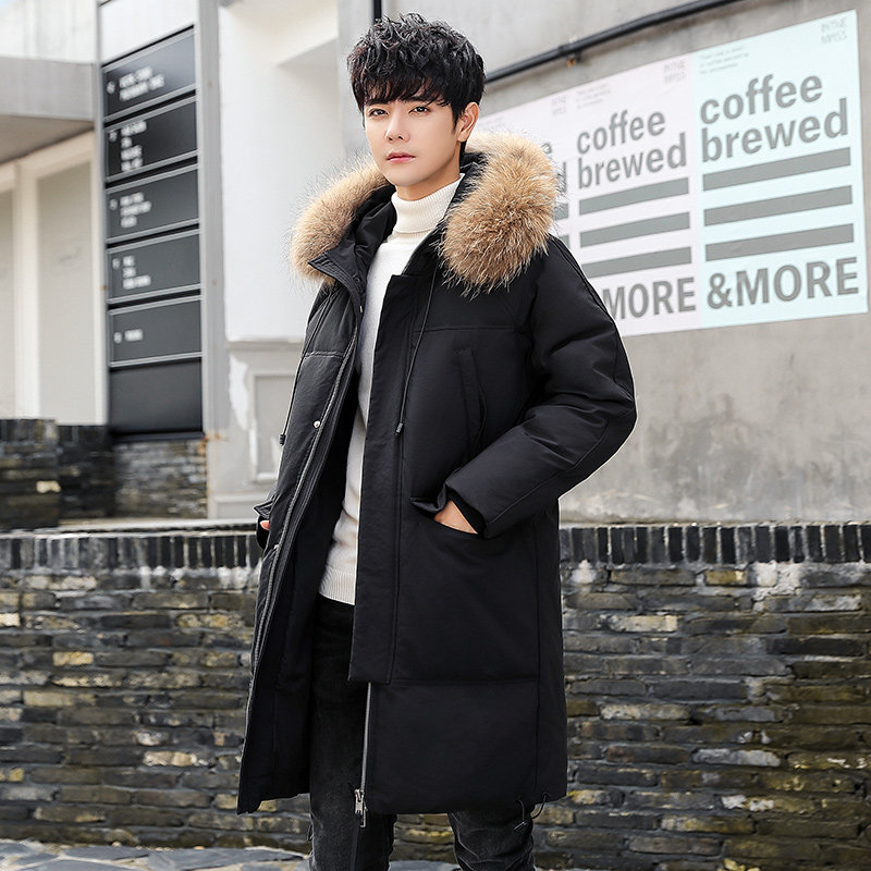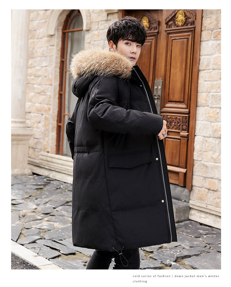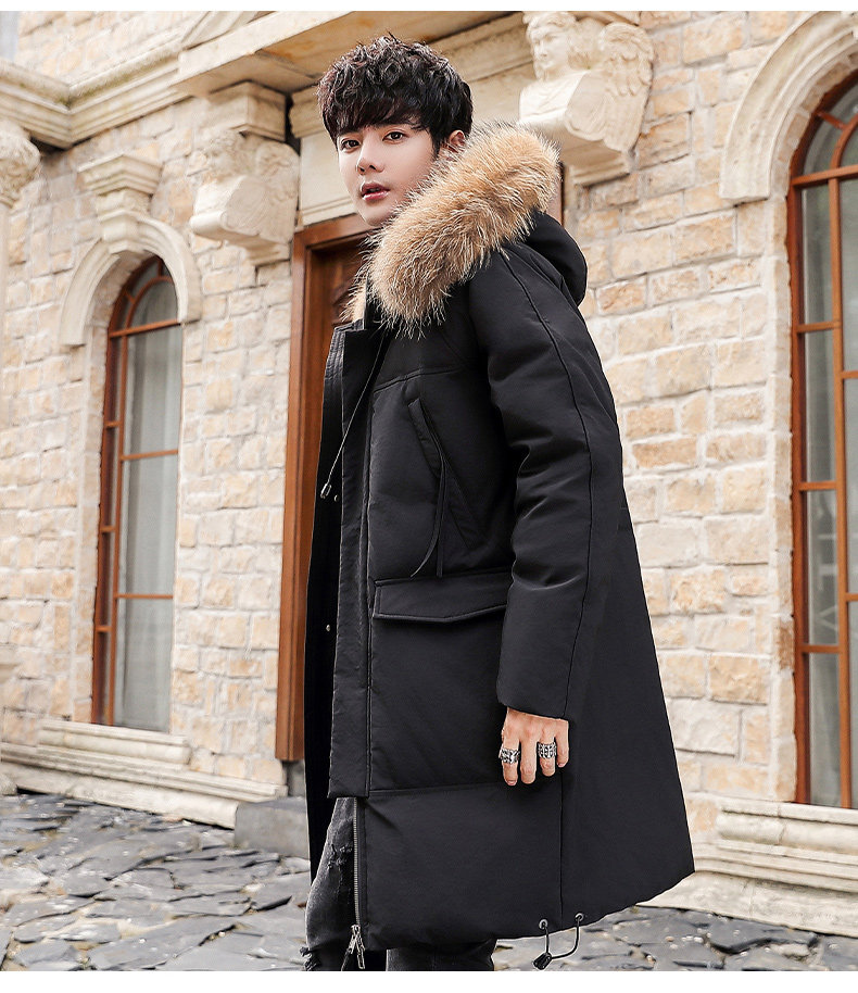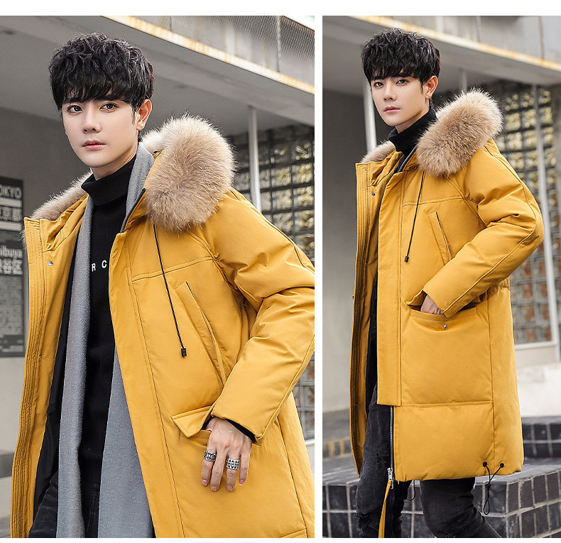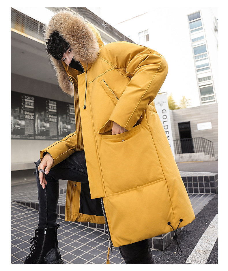 GOOMIL LEE Мужской трендовый пуховик, бархатная длинная толстовка с капюшоном, удерживающая тепло куртка, оверсайз, утиный пух, средней длины