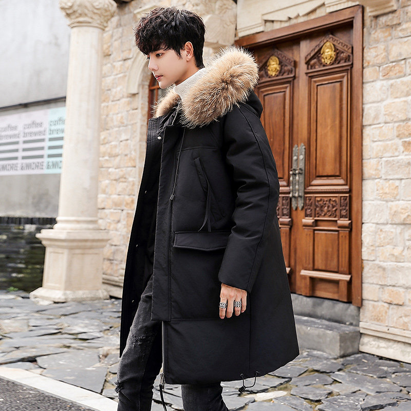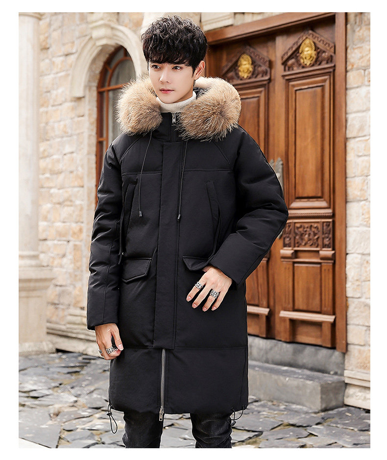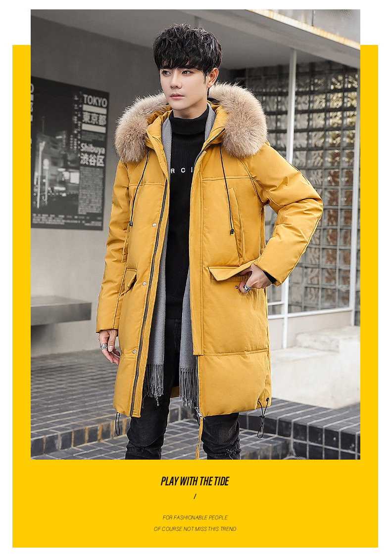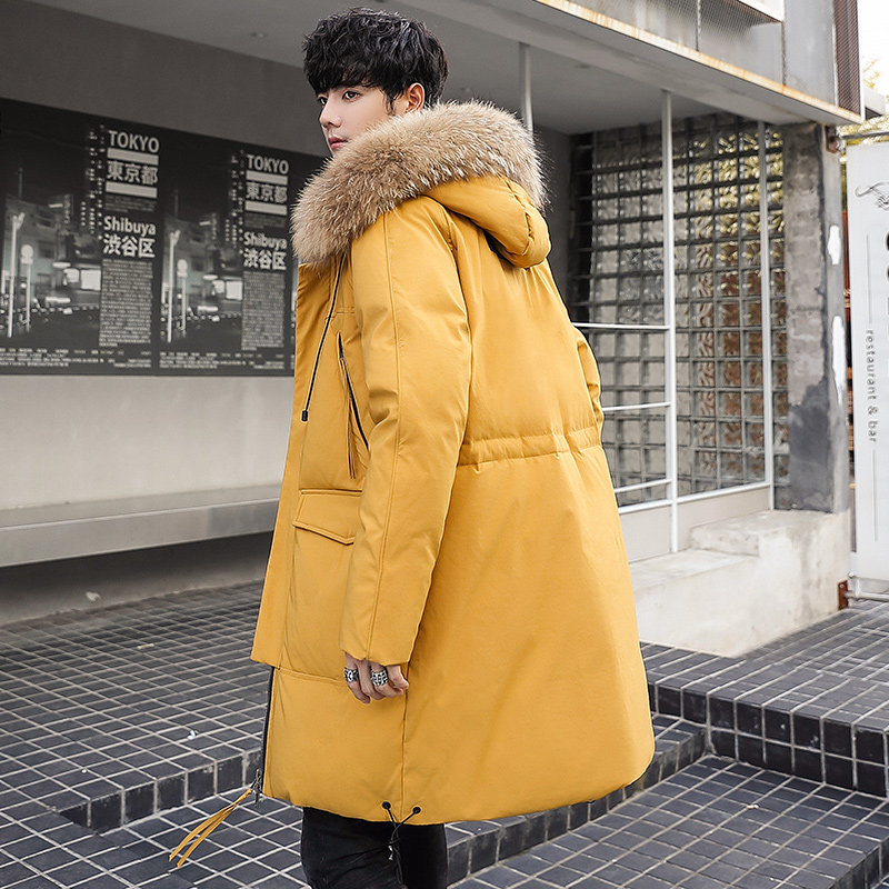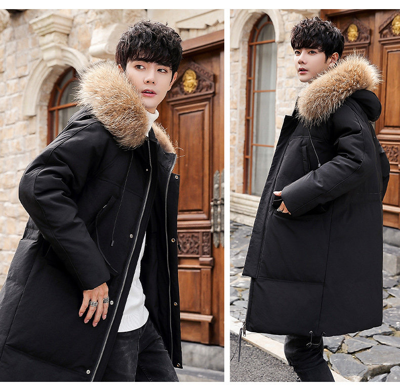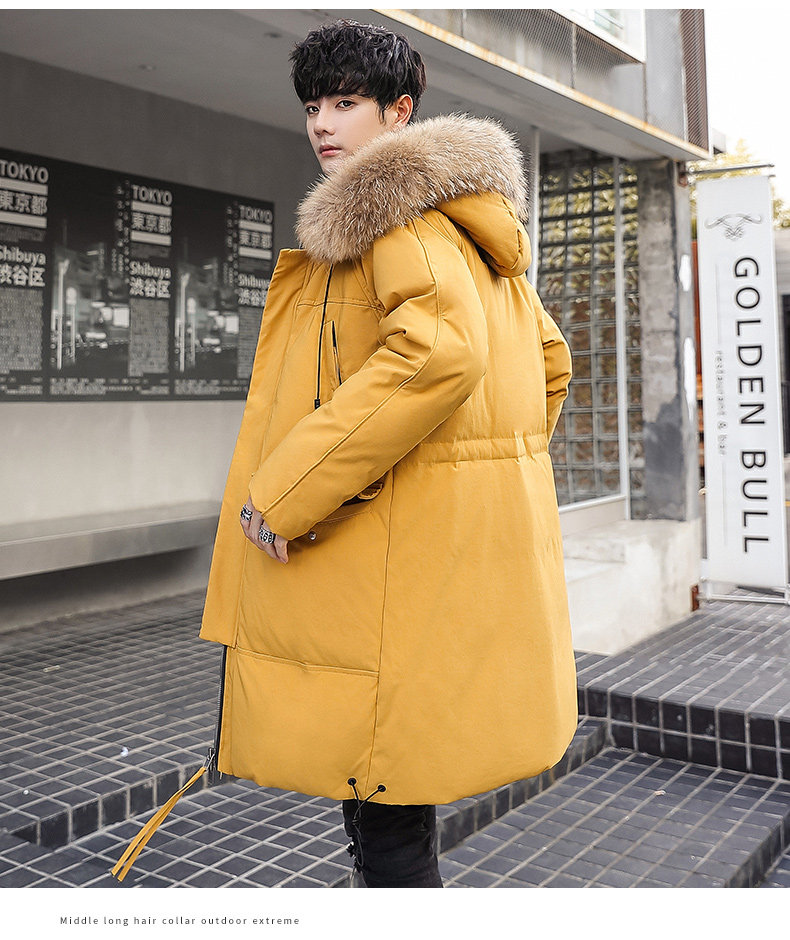 GOOMIL LEE Мужской трендовый пуховик, бархатная длинная толстовка с капюшоном, удерживающая тепло куртка, оверсайз, утиный пух, средней длины