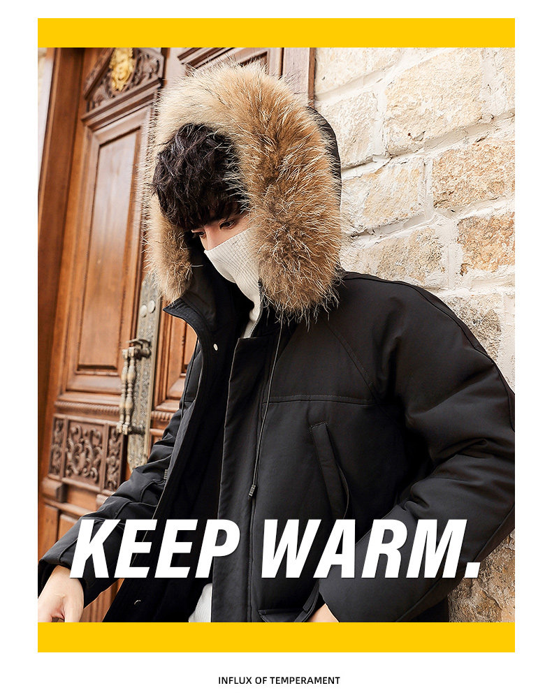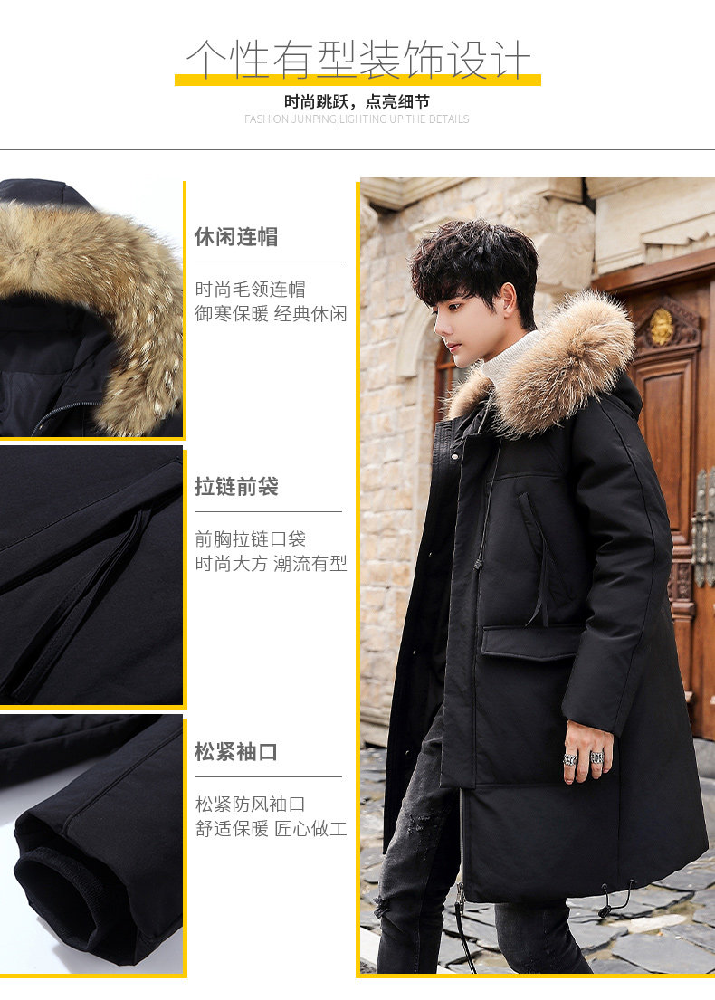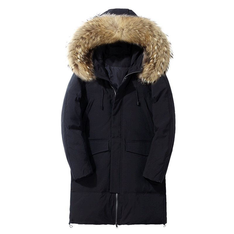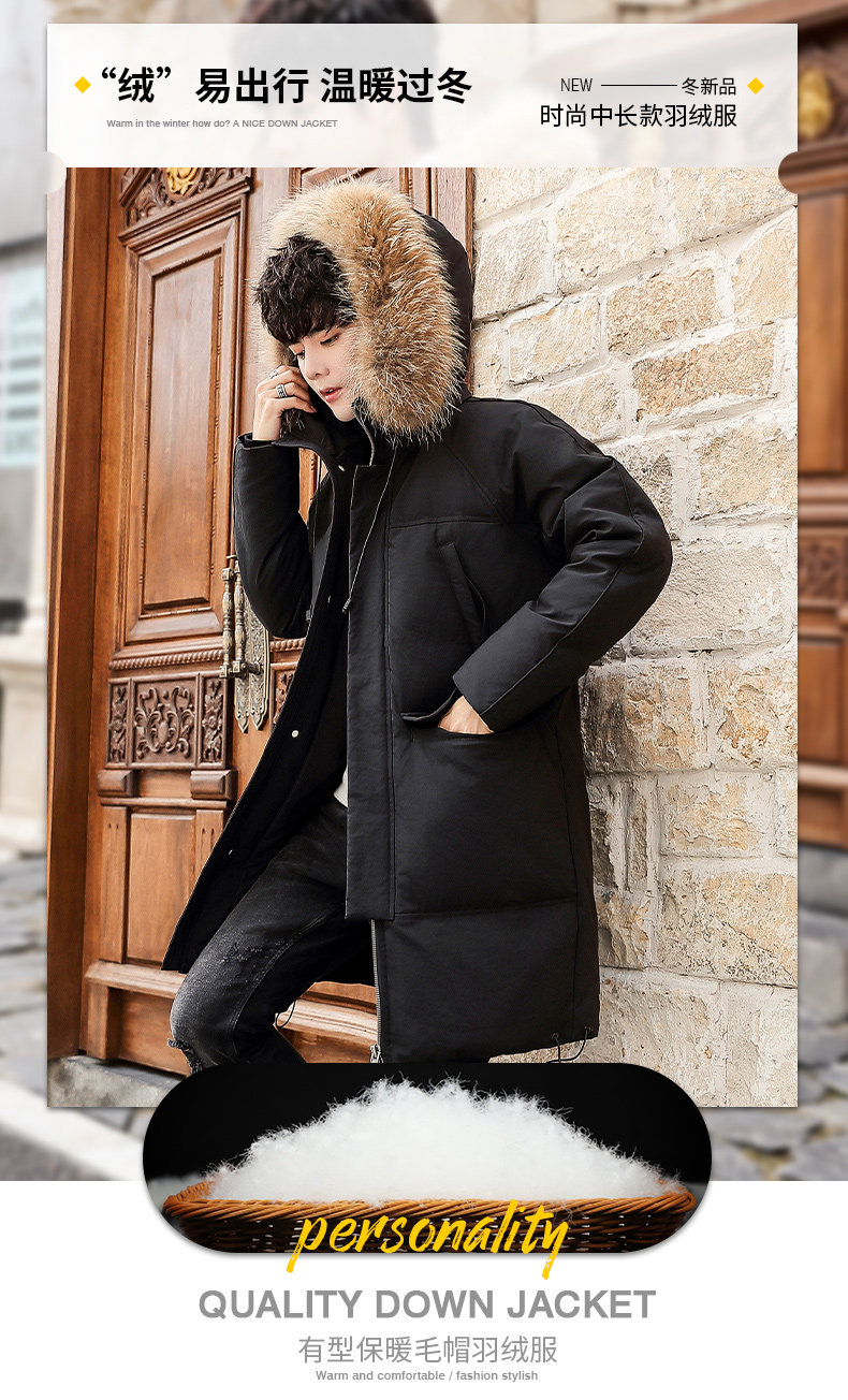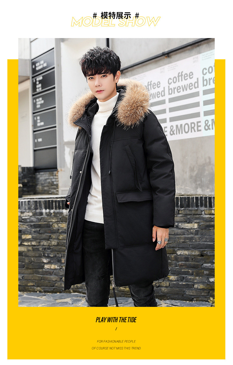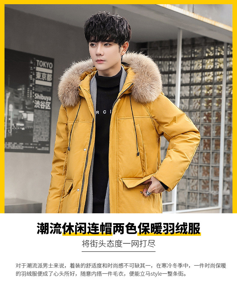 GOOMIL LEE Мужской трендовый пуховик, бархатная длинная толстовка с капюшоном, удерживающая тепло куртка, оверсайз, утиный пух, средней длины