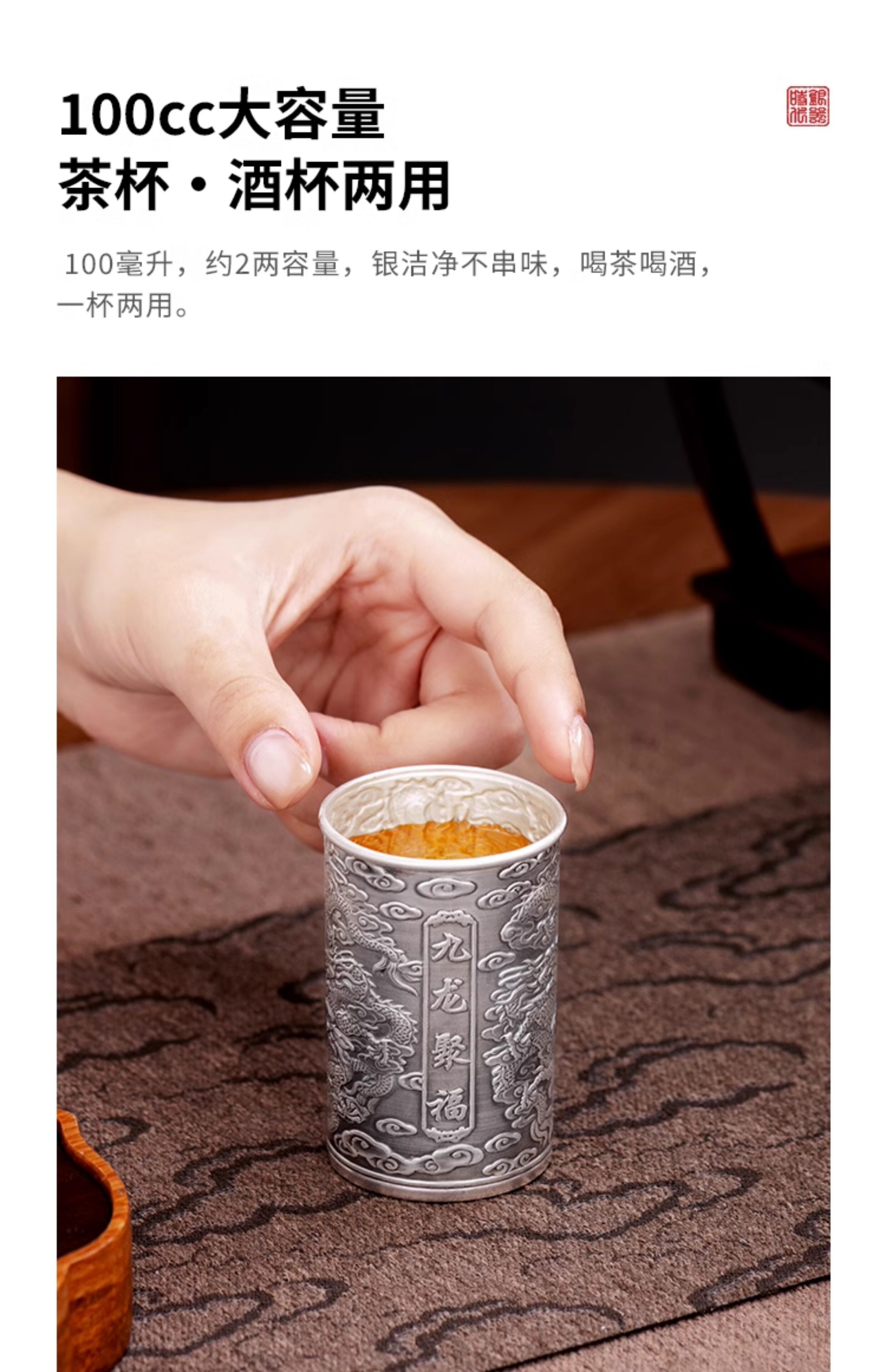 银器时代 Чашка Spirit из стерлингового серебра 999 пробы, чашка для белого вина, бытовой высококачественный набор для вина, набор для сакэ, одна чашка, старинная серебряная чашка