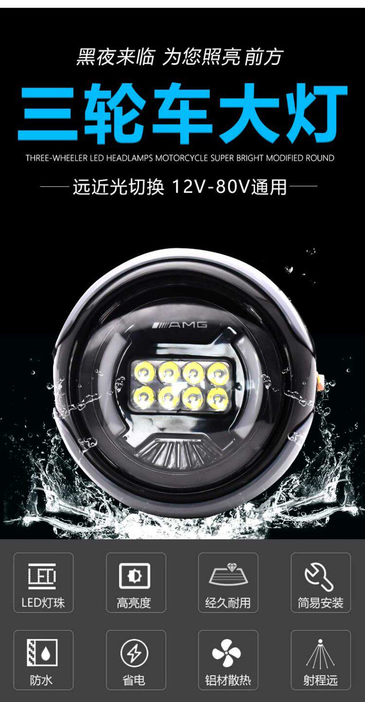Электрический супер яркий модифицированный трехколесный велосипед, универсальный электромобиль, 12v, 80v