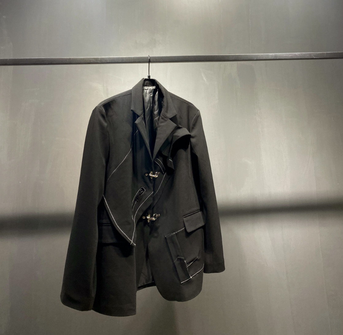 - Черно -белая линия деконструирует костюм