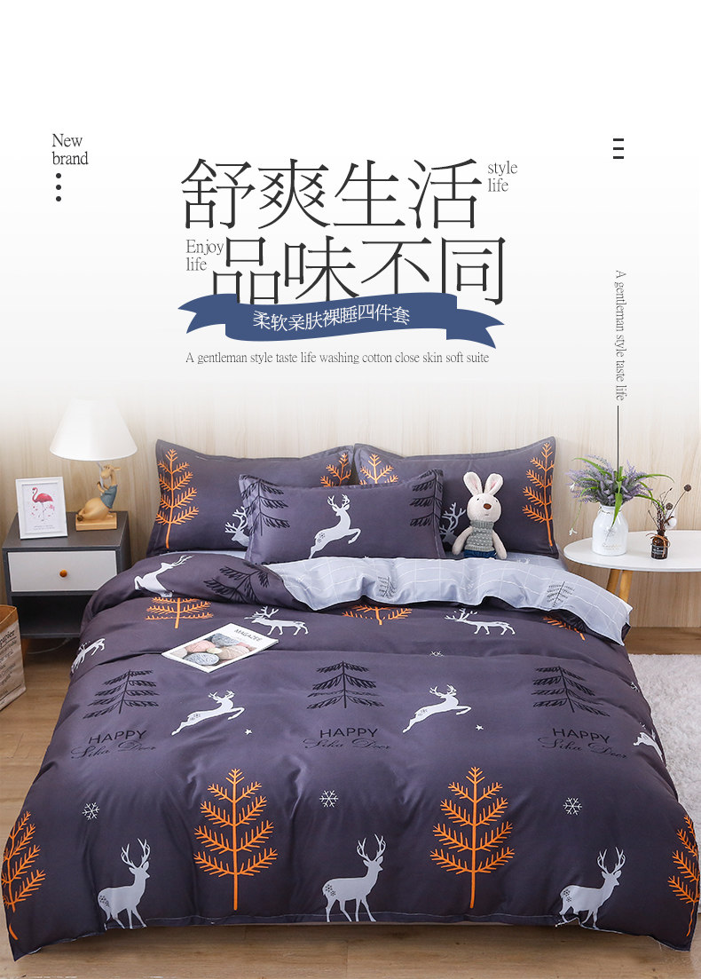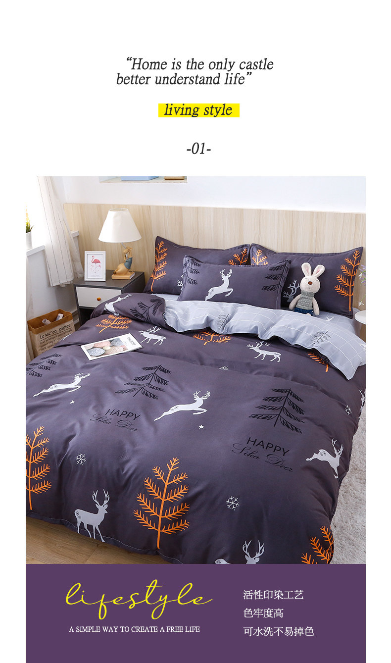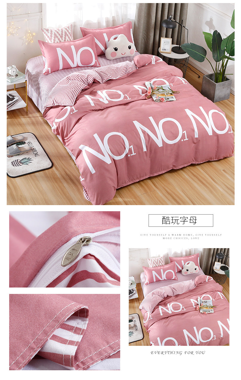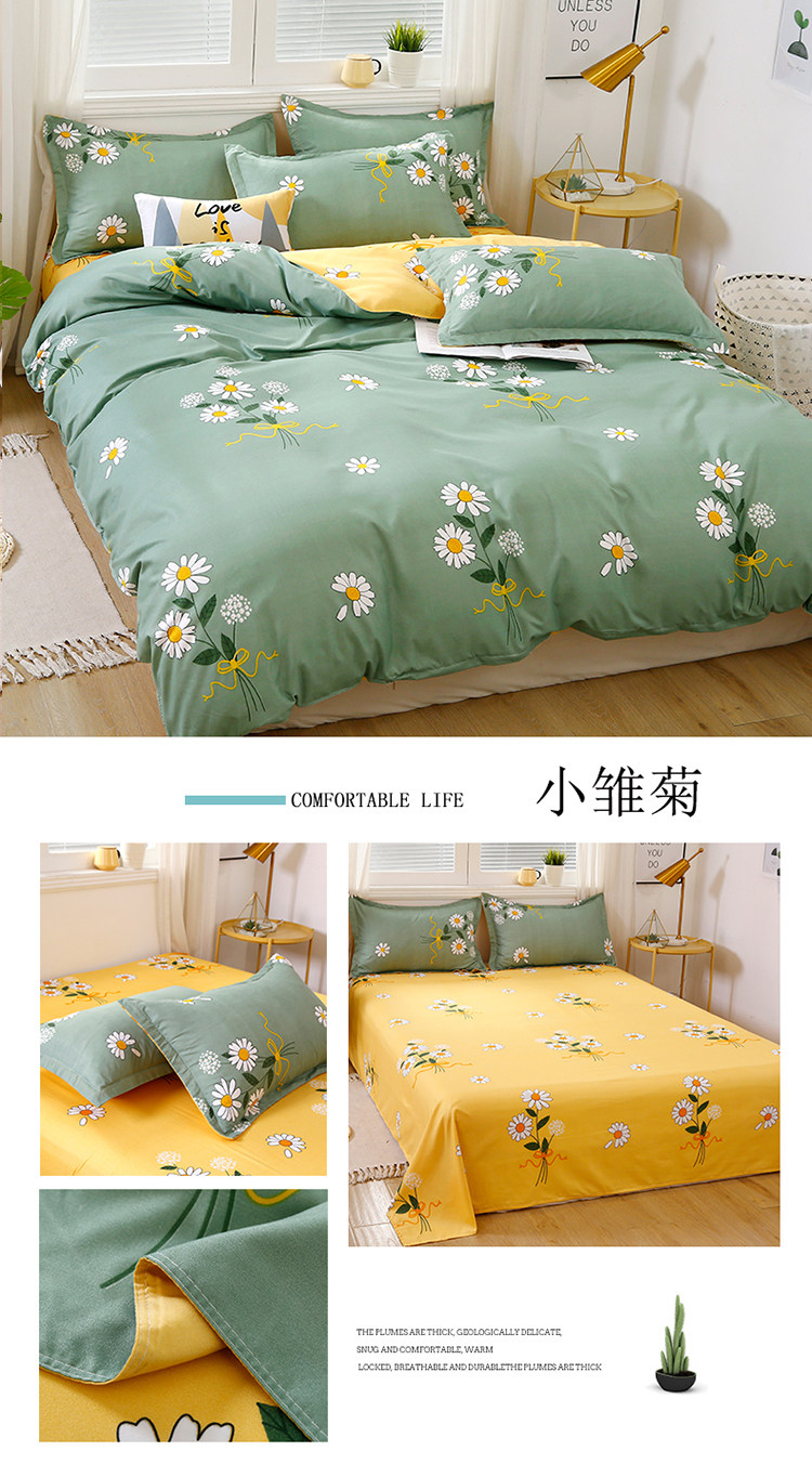 Летний свежий комплект для школьников и студентов, пододеяльник, простыня, 4 предмета, простой и элегантный дизайн, 3 предмета