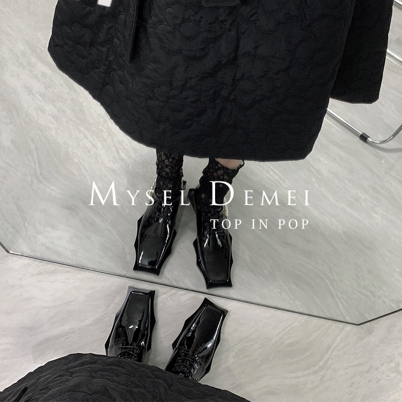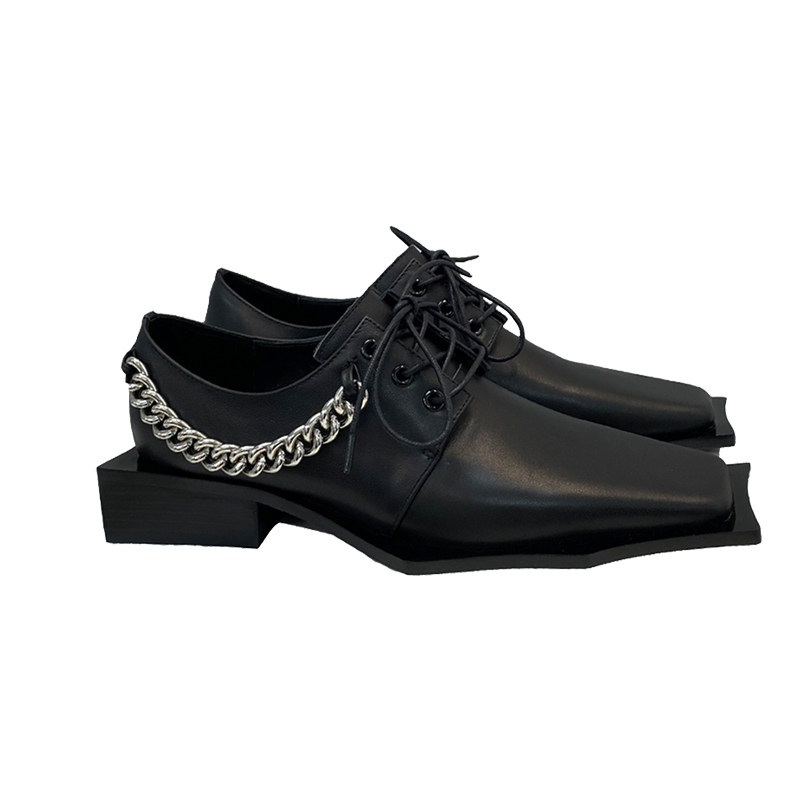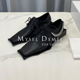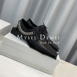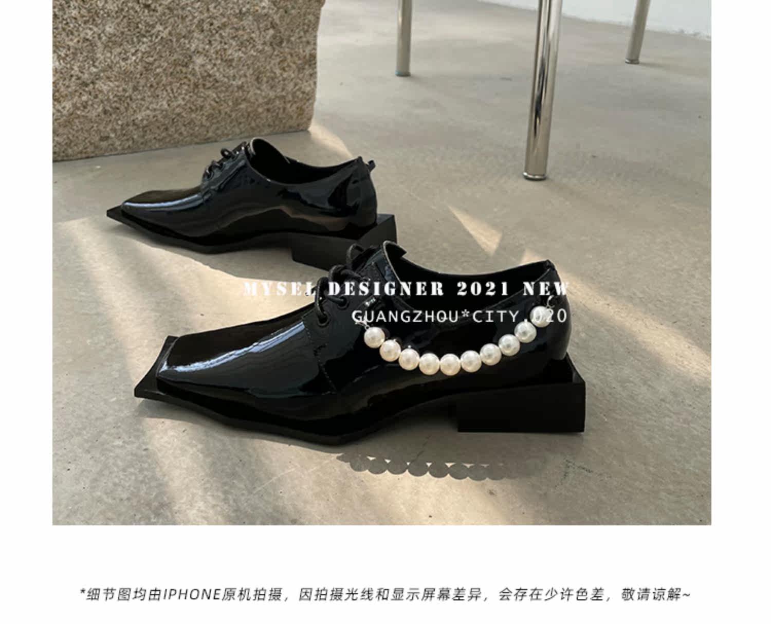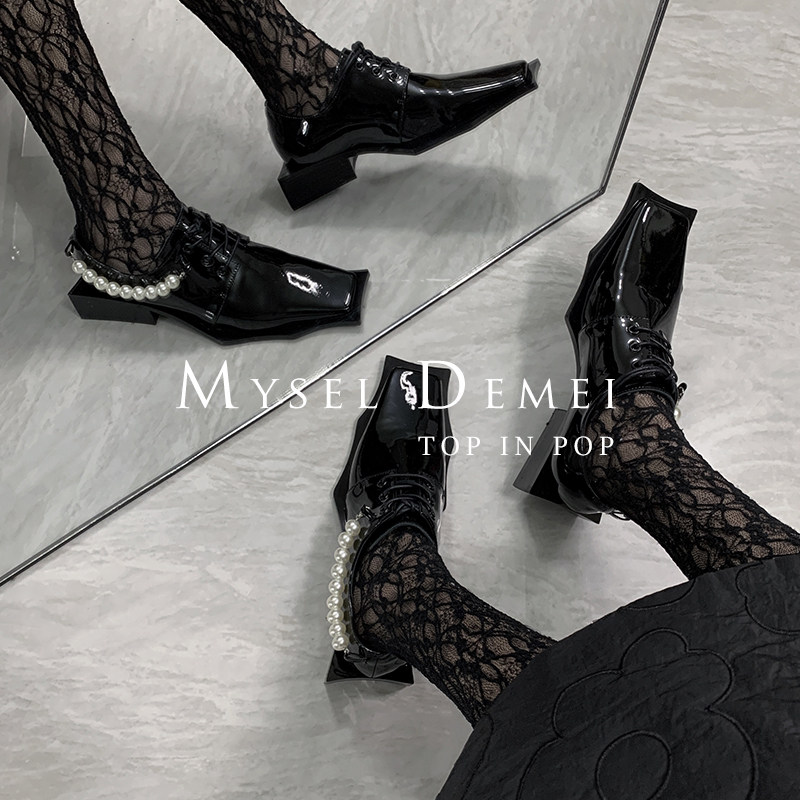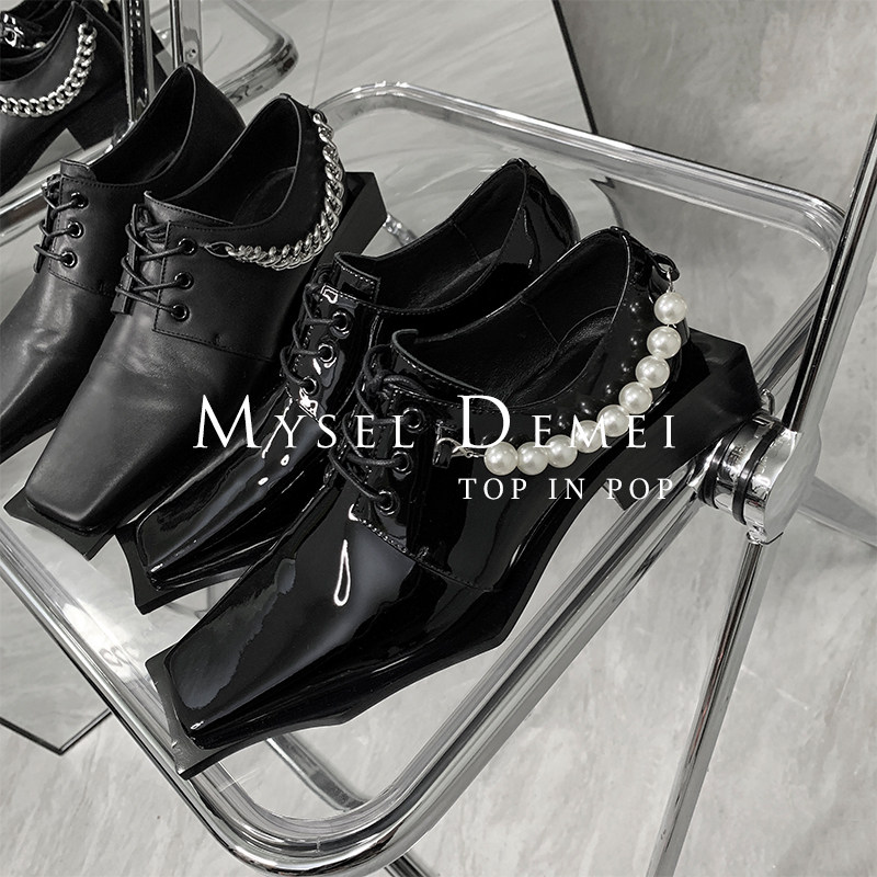 ANN ZARQUA модные весенне-летние лакированные туфли на шнуровке с квадратным носком 2021 года, черные нишевые женские туфли интернет-знаменитостей с жемчужной цепочкой