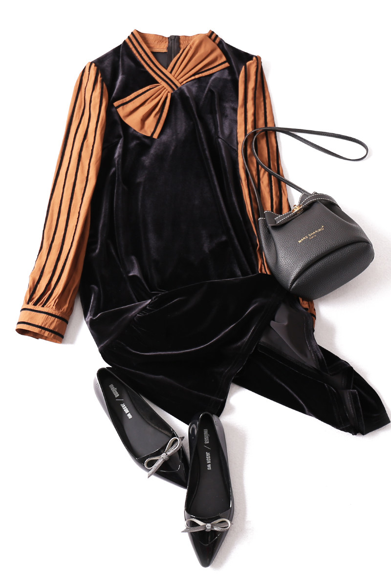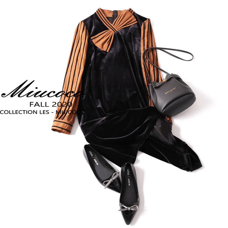Ретро цветное бархатное платье с бантиком, в стиле кэжуал, в западном стиле