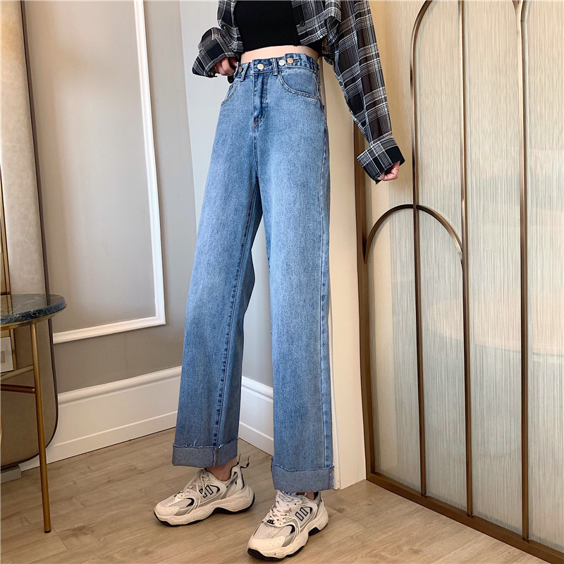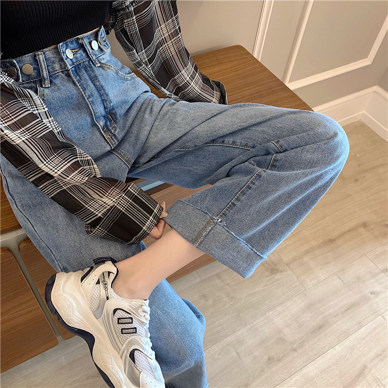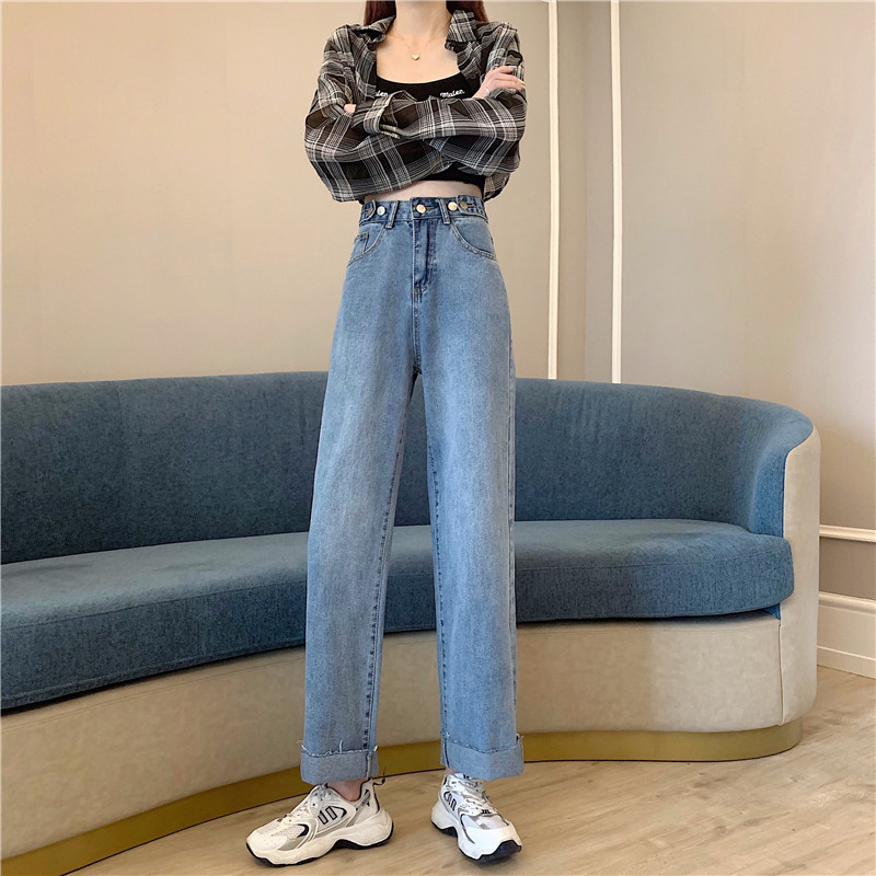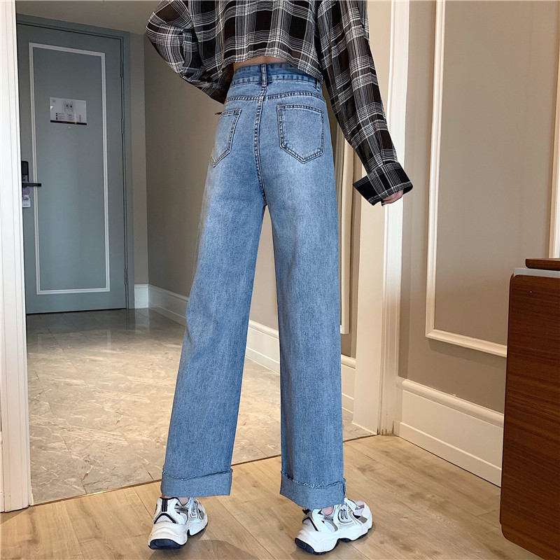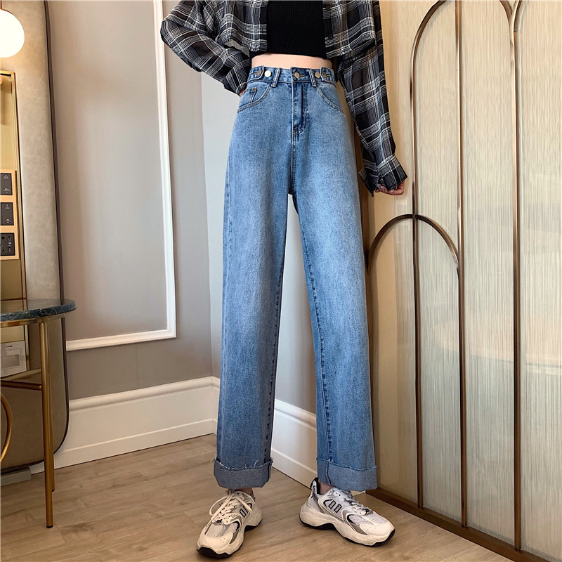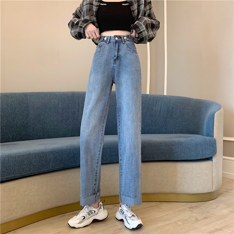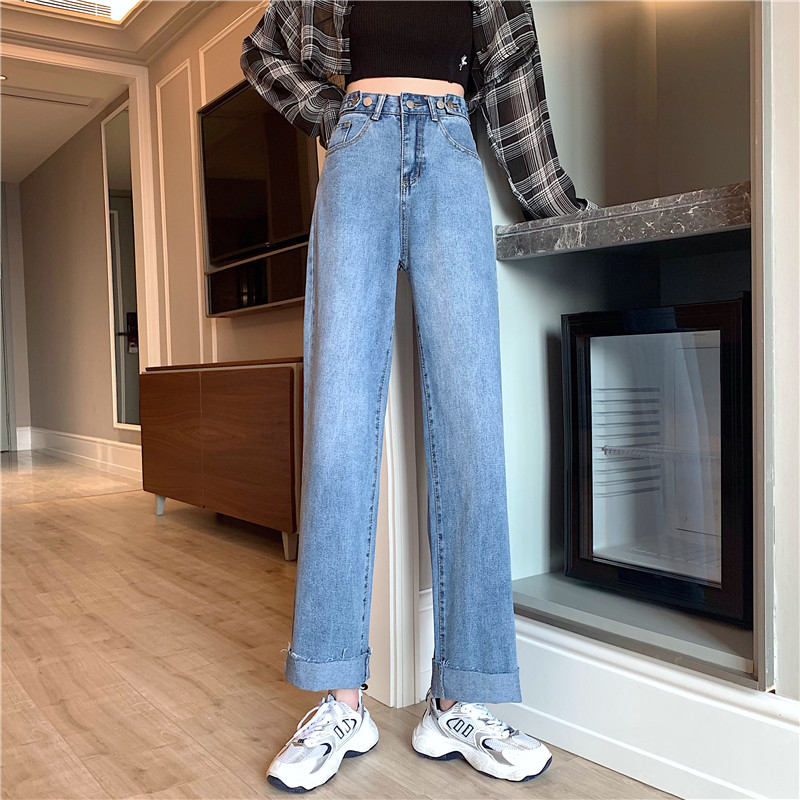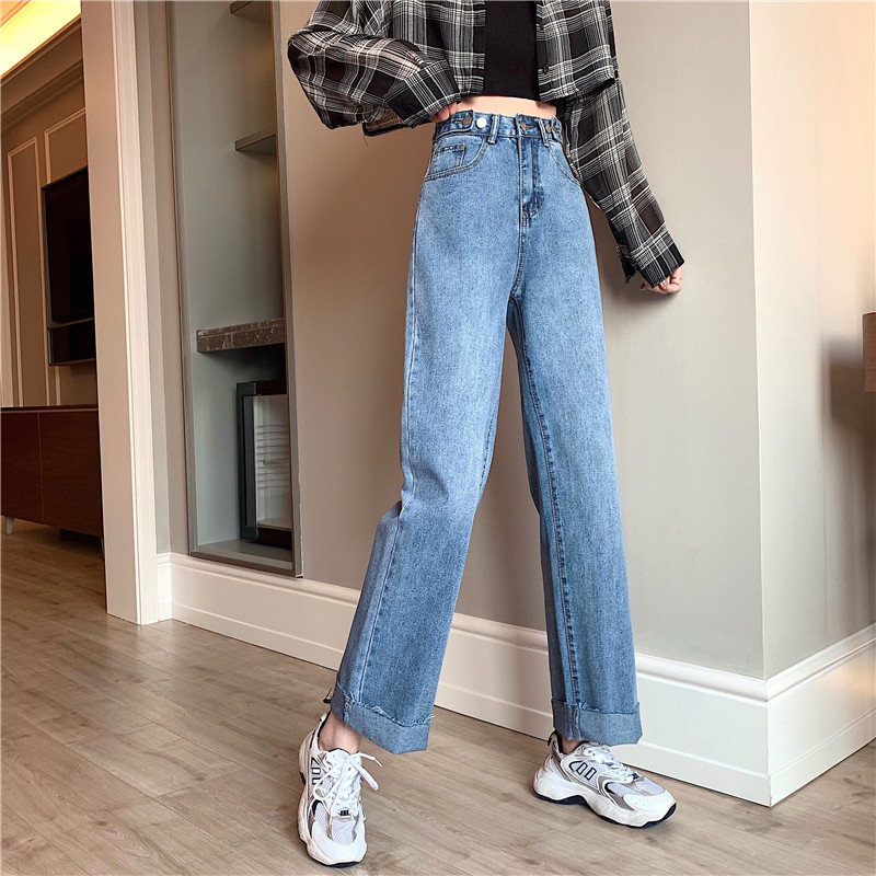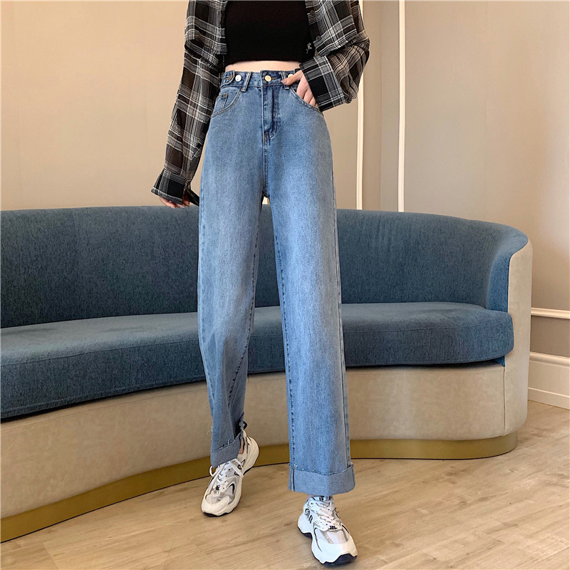 Осенние джинсы, штаны, высокая талия, свободный прямой крой, большой размер