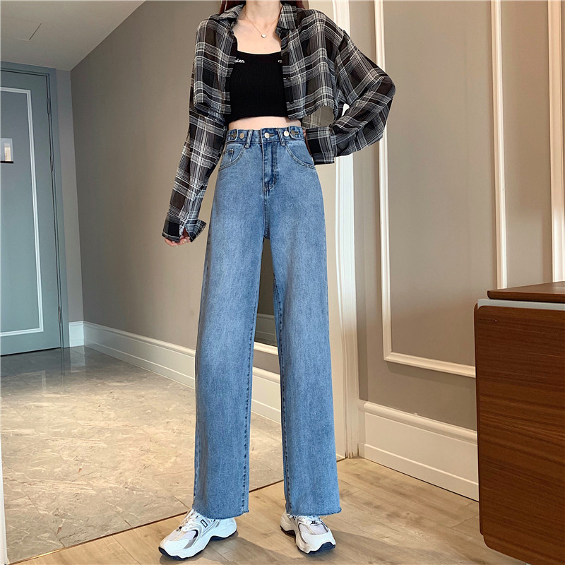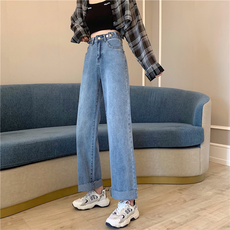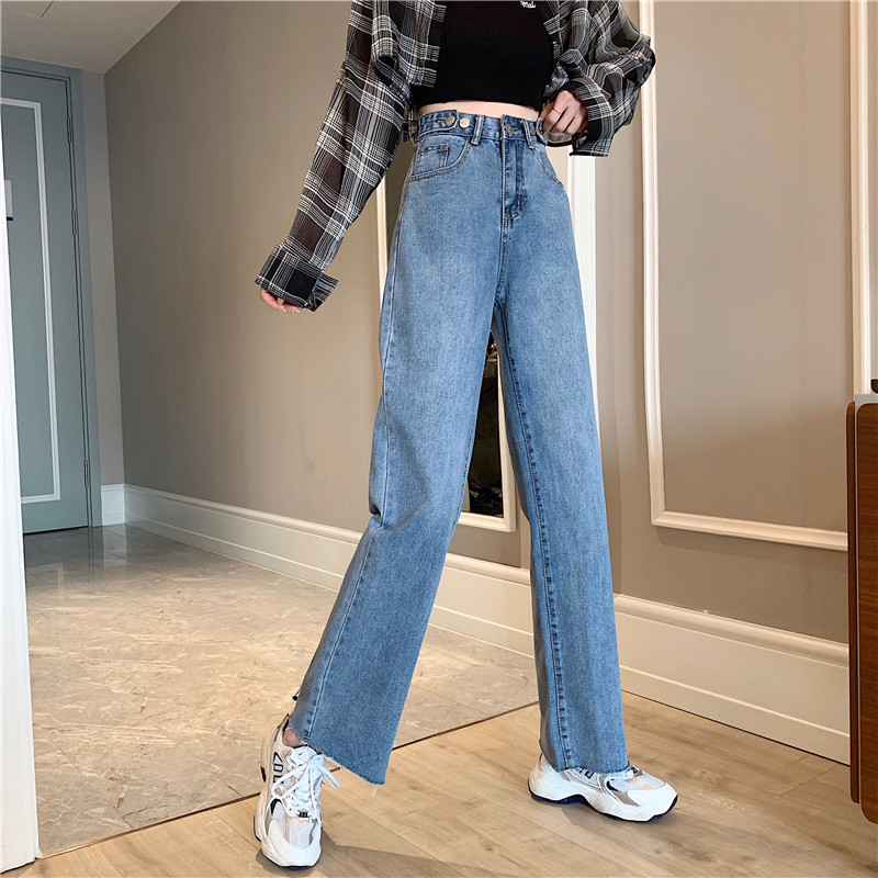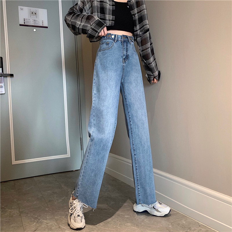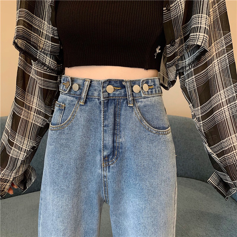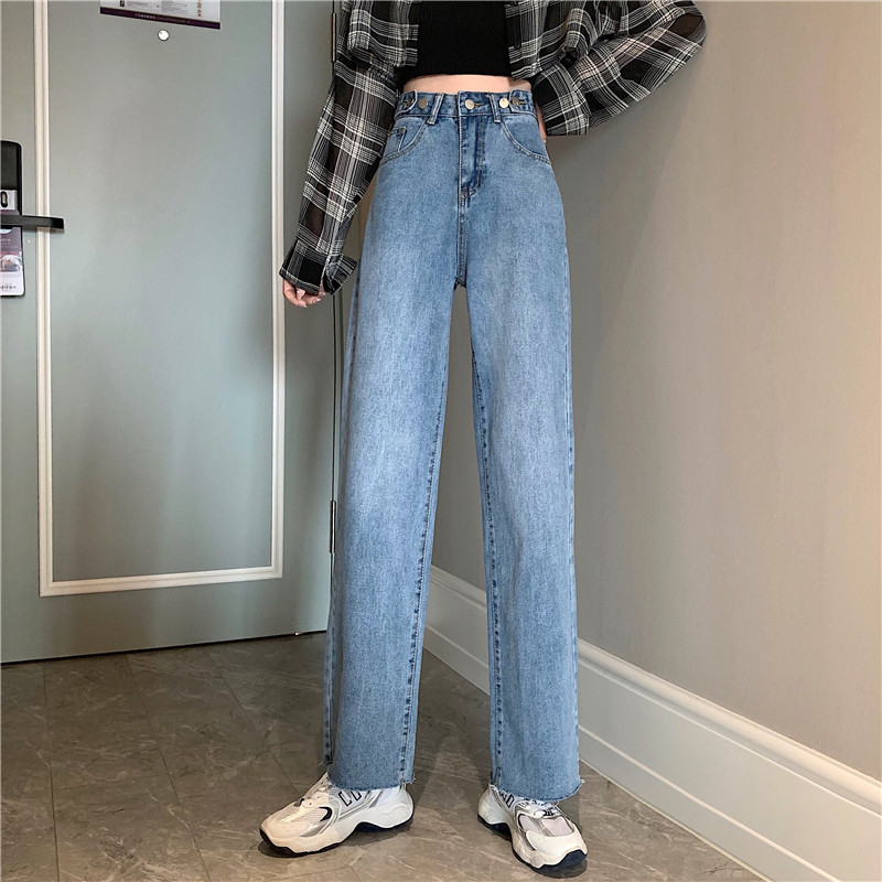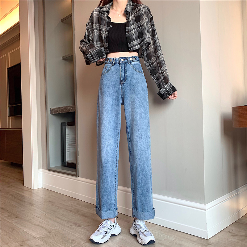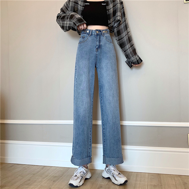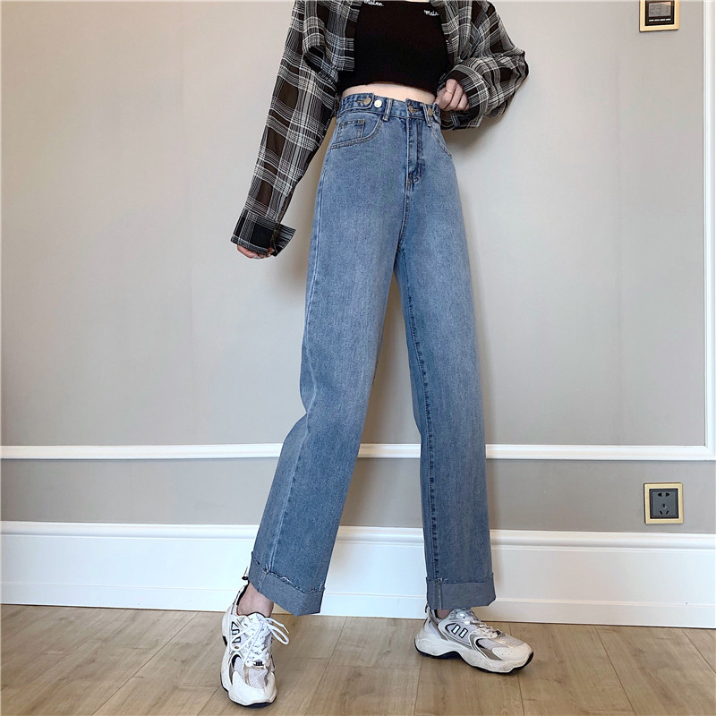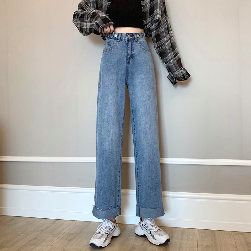 Осенние джинсы, штаны, высокая талия, свободный прямой крой, большой размер