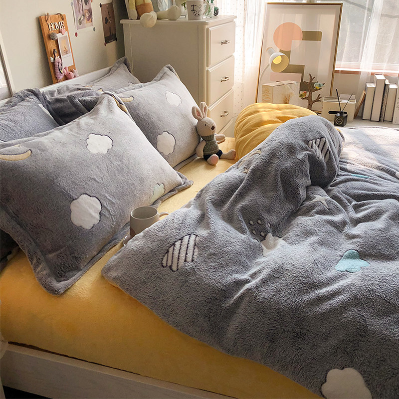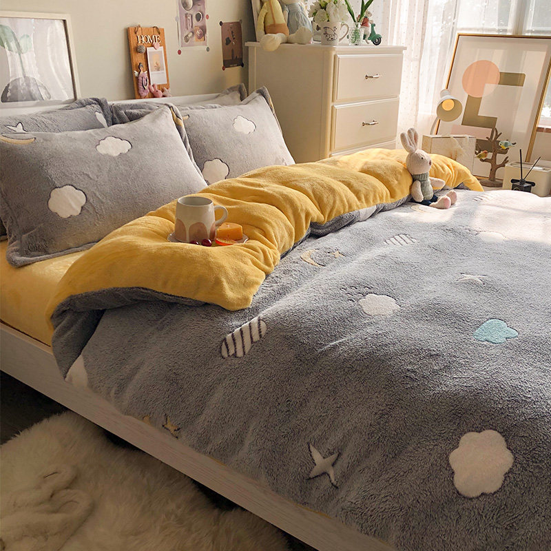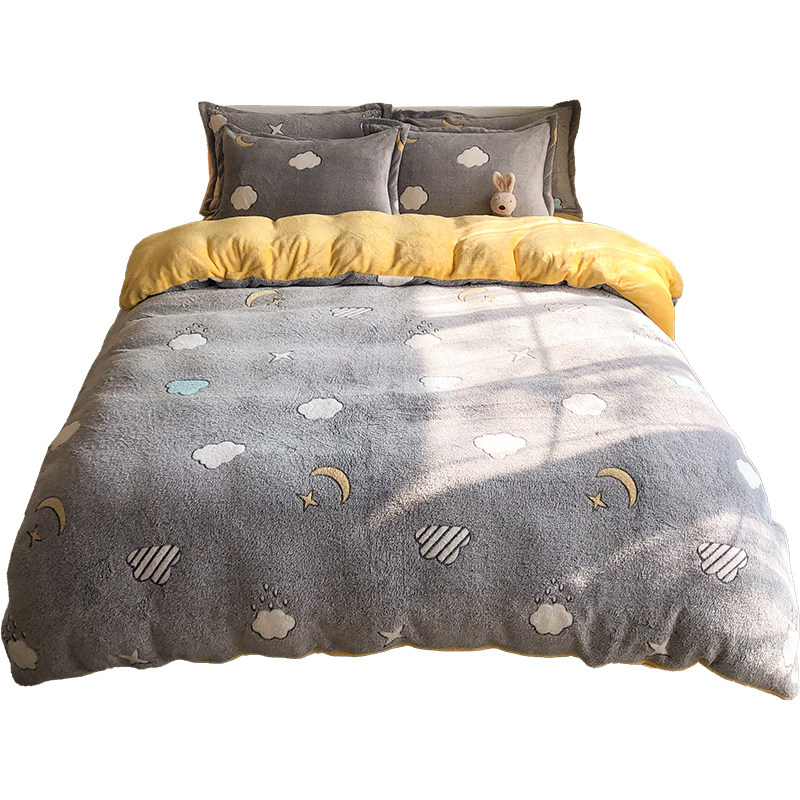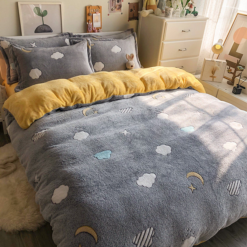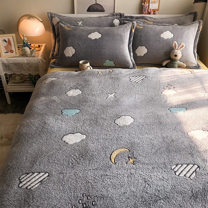 Зимнее двусторонное коралловое покрывало, комплект, фланелевая простыня, пододеяльник, 4 предмета, увеличенная толщина, 3 предмета