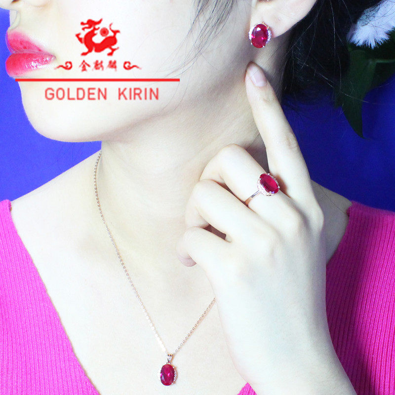 Золотой рубиновый изысканный комплект, Россия, 14 карат, розовое золото, 3 предмета