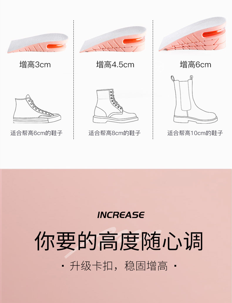 | Цвет: | 2 пары] Воздушная подушка увеличивает рост на 4,5 см, розовая., 2 пары】 Высота воздушной подушки увеличивается на 3 см черного, 2 пары】 Высота воздушной подушки увеличивается на 4,5 см черного, 2 пары】 Высота воздушной подушки 6 см черно |