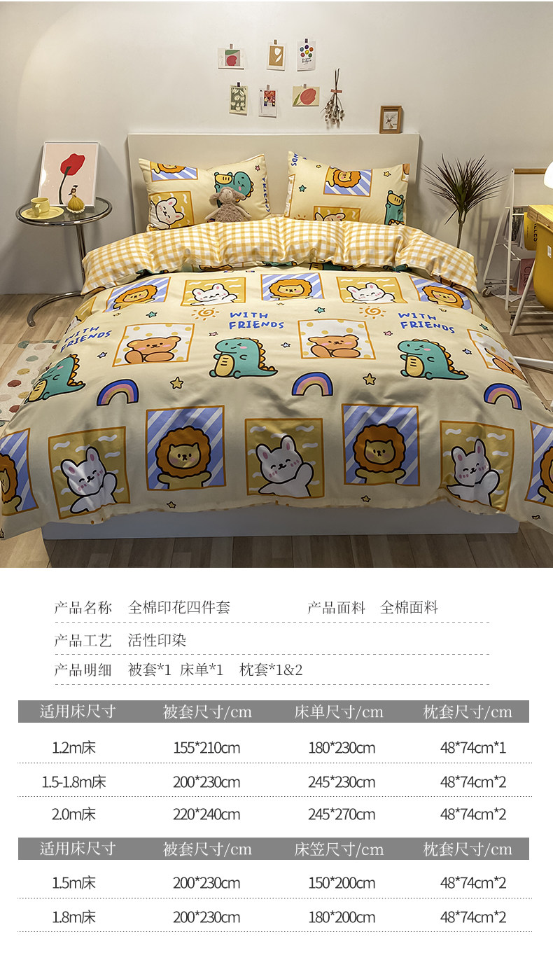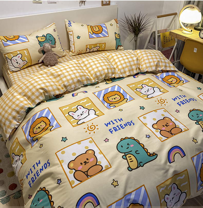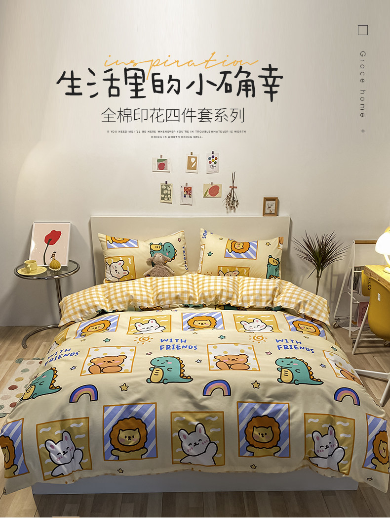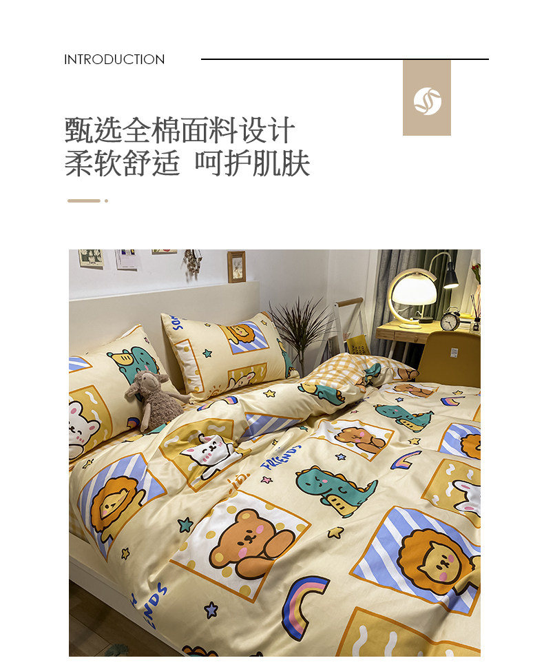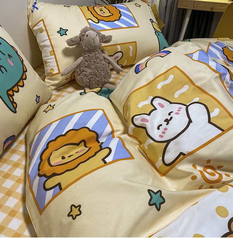 Мультяшный хлопковый брендовый комплект, простыня, пододеяльник, скандинавский стиль, 4 предмета, 3 предмета