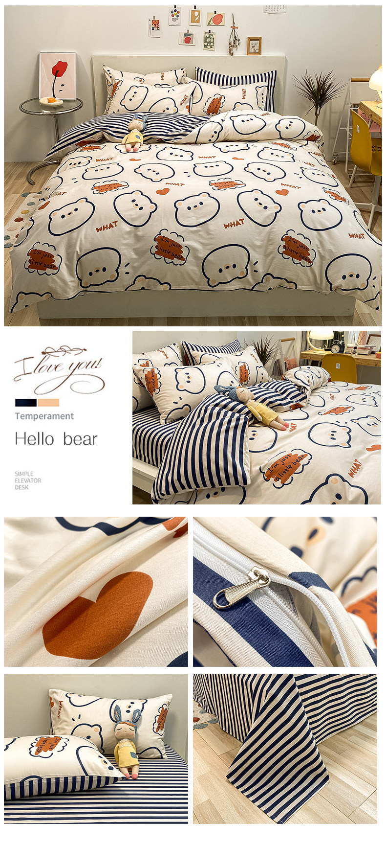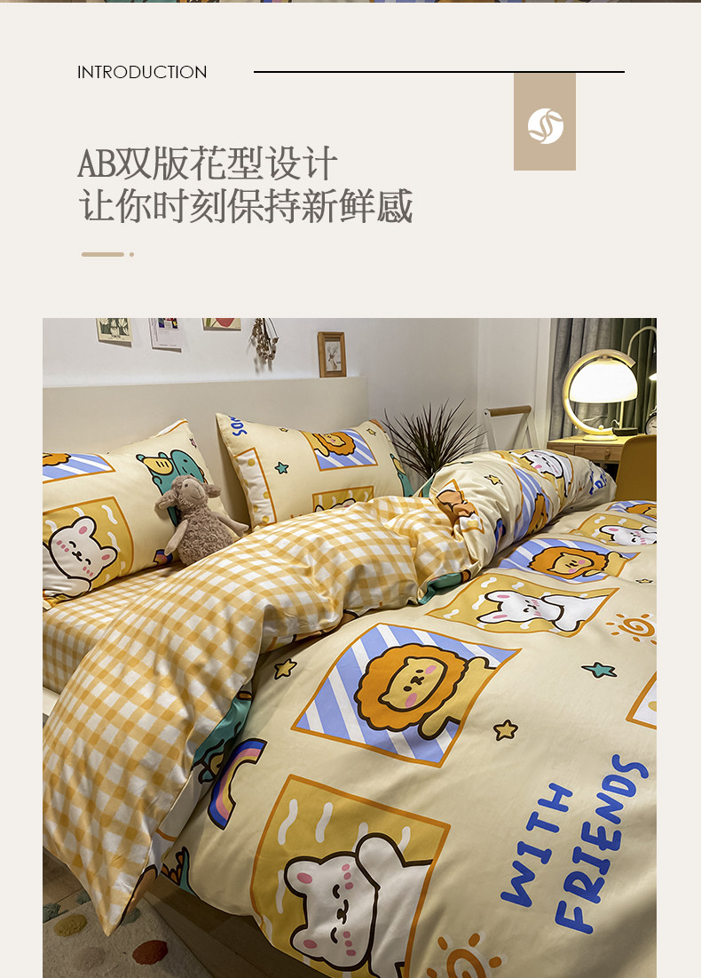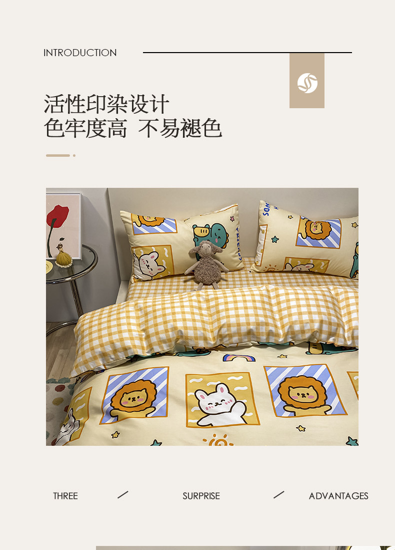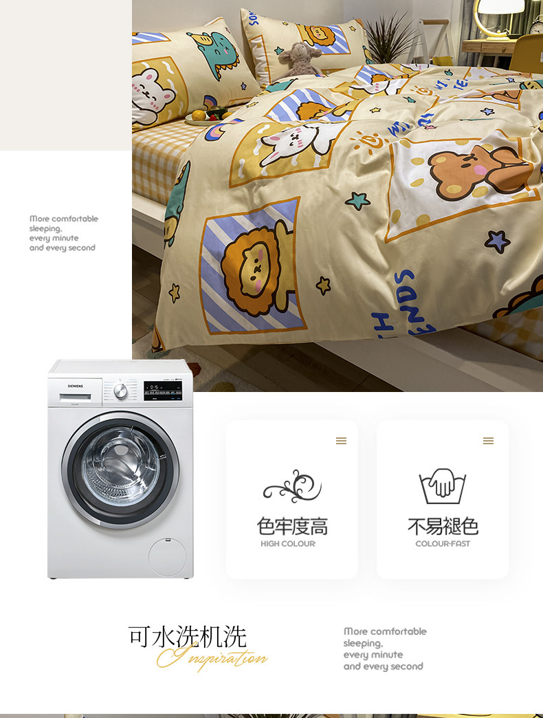 Мультяшный хлопковый брендовый комплект, простыня, пододеяльник, скандинавский стиль, 4 предмета, 3 предмета