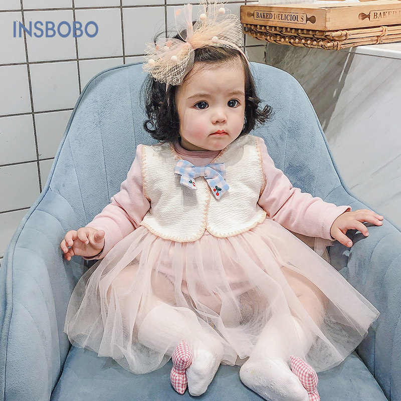 Детское платье, юбка для девочек, комплект, жилет, боди, в западном стиле