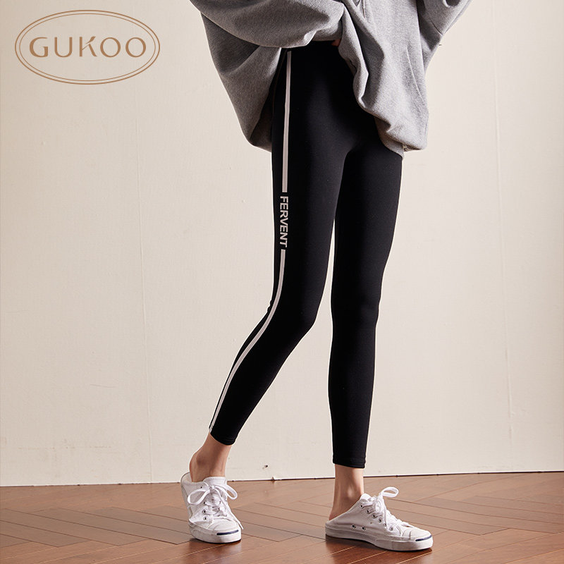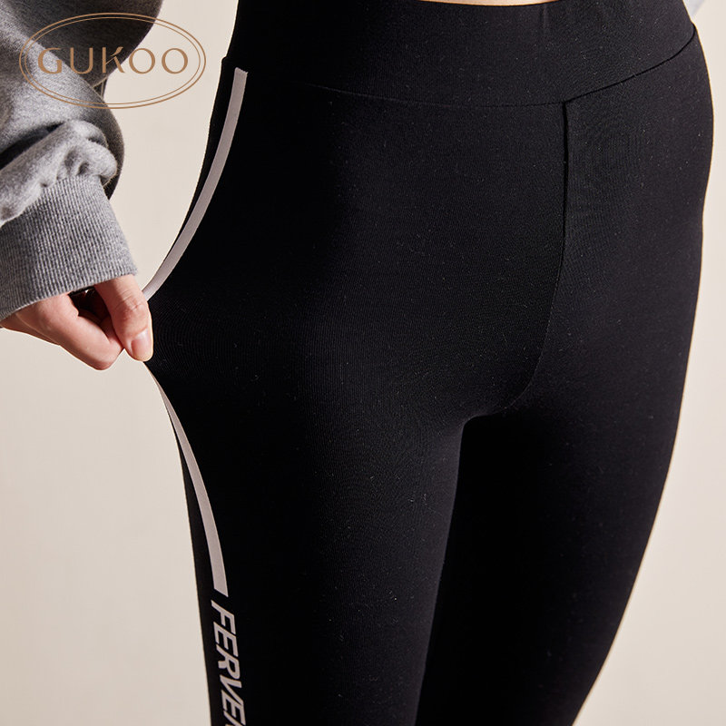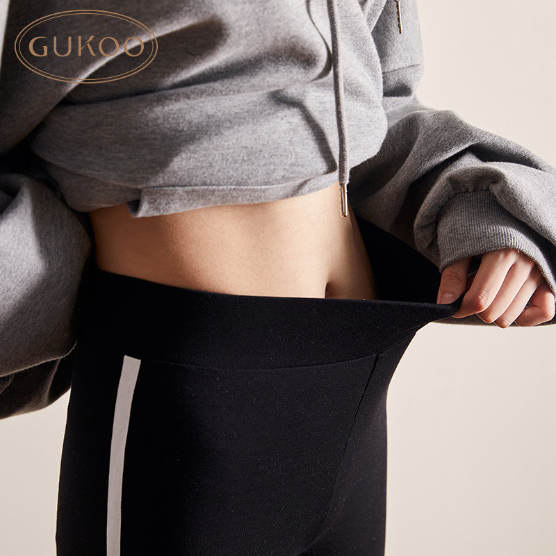Gukoo/果壳 Демисезонные леггинсы, флисовые эластичные спортивные черные штаны, в обтяжку