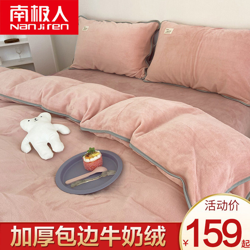 Зимний коралловый двусторонний комплект, фланелевая простыня, пододеяльник, покрывало, 4 предмета