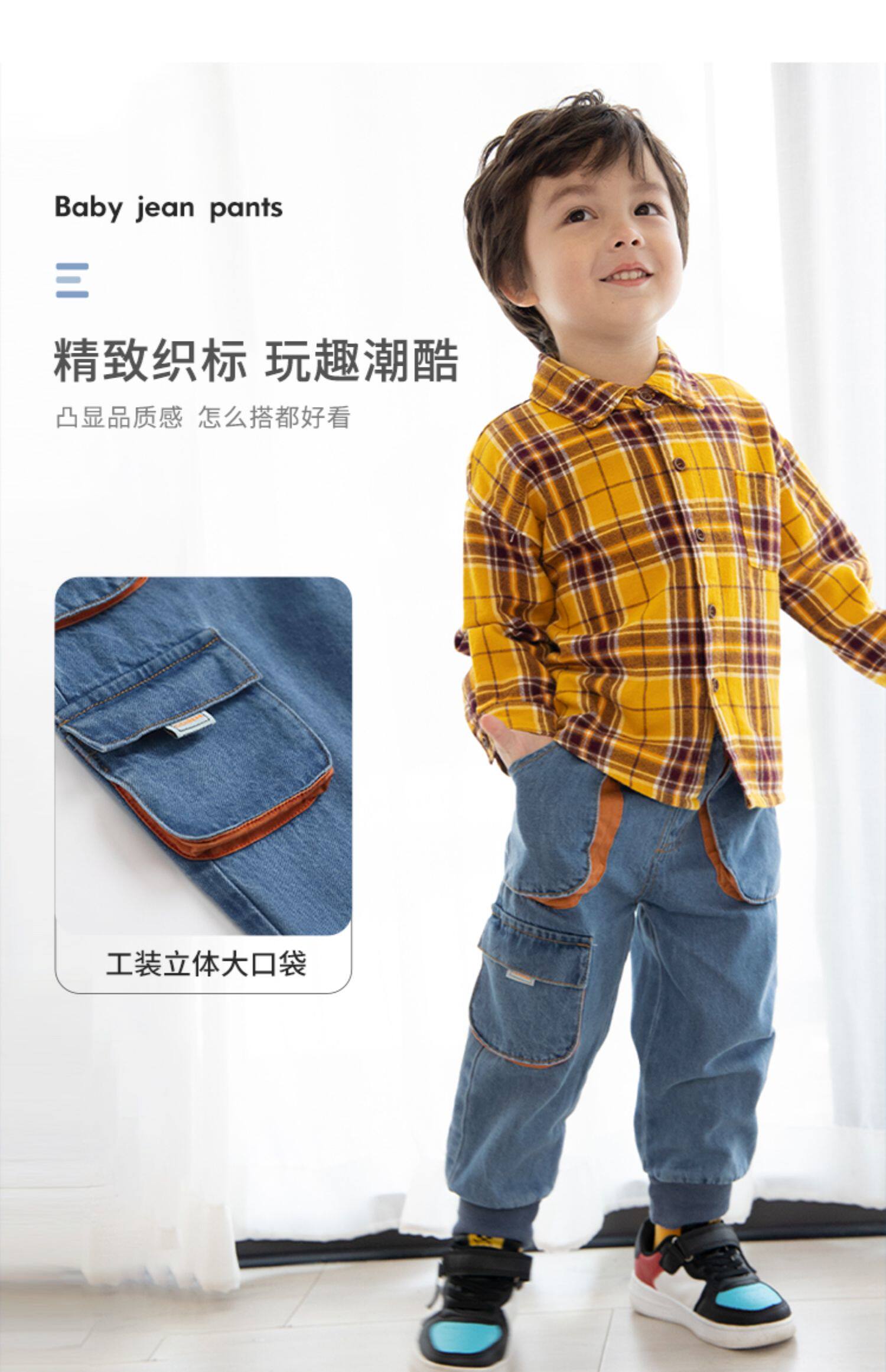 Осенние штаны для мальчиков, детские джинсы, коллекция 2021