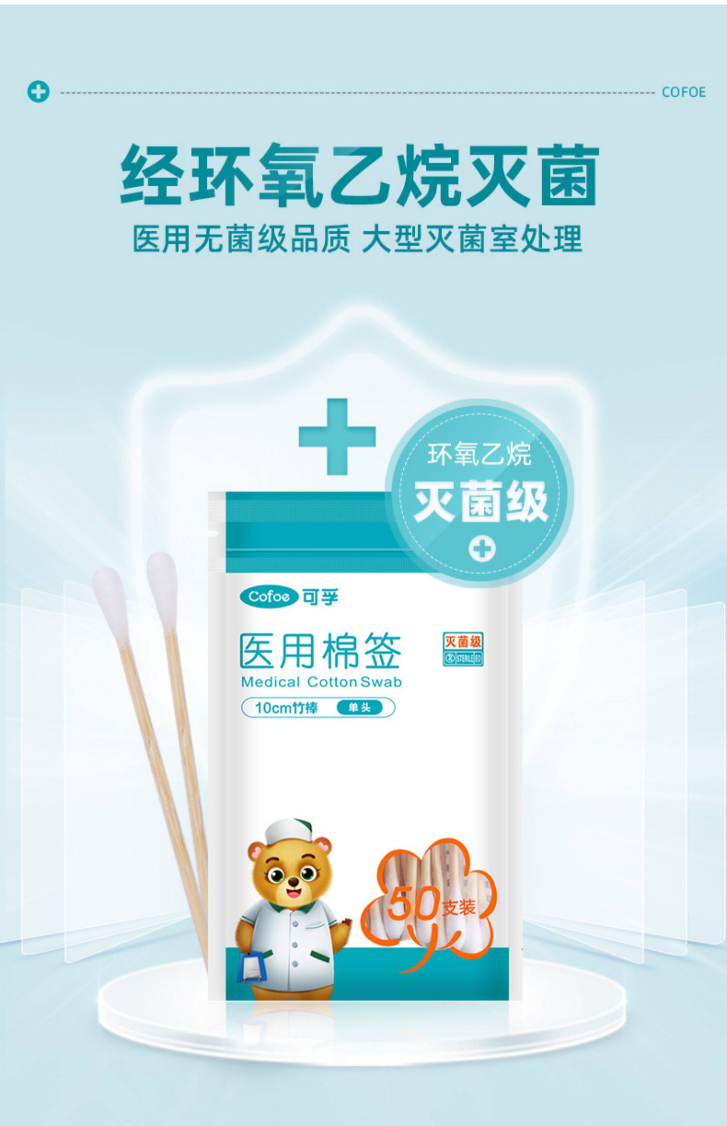 可孚 Ватные палочки для домашнего использования, детская антибактериальная хлопковая одноразовая гигроскопическая вата
