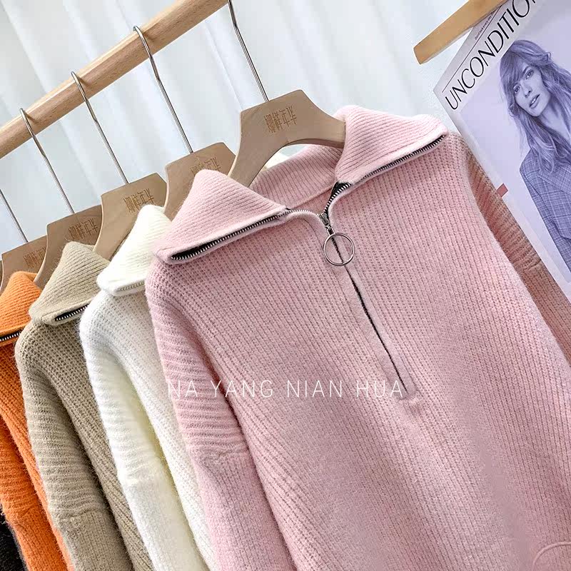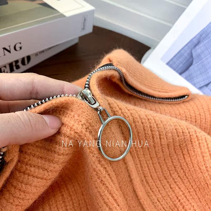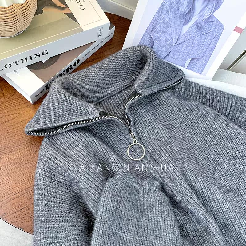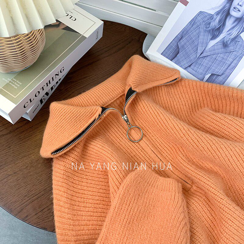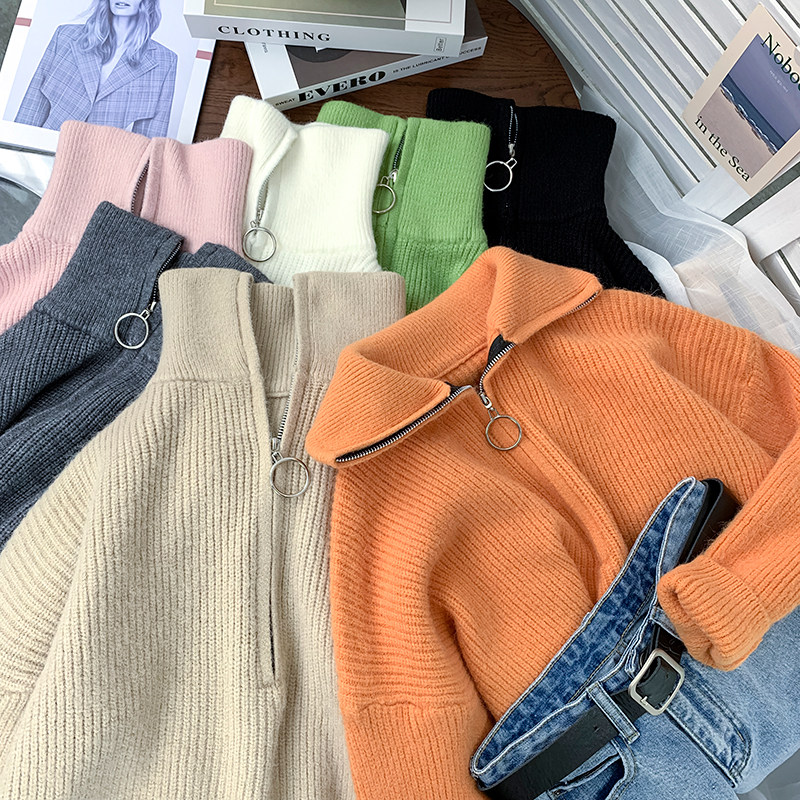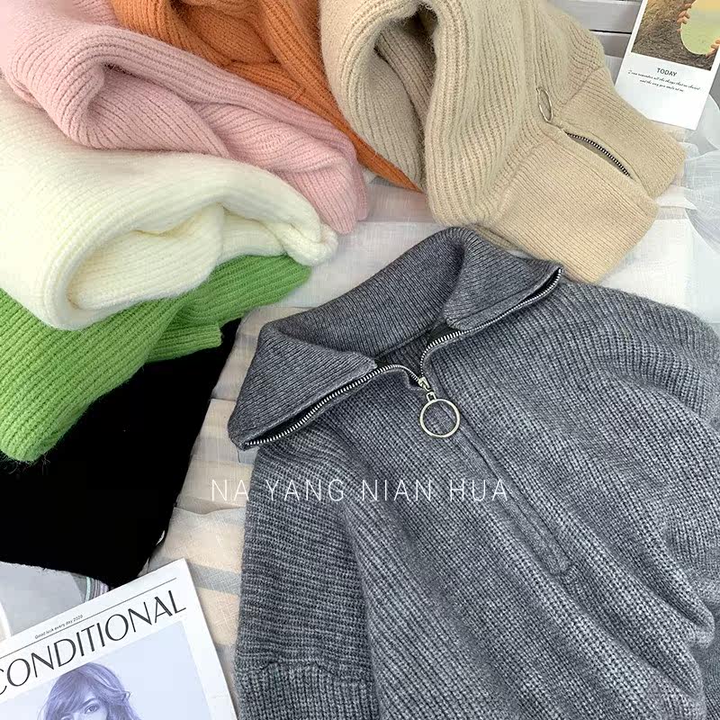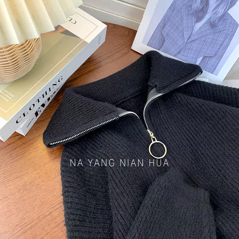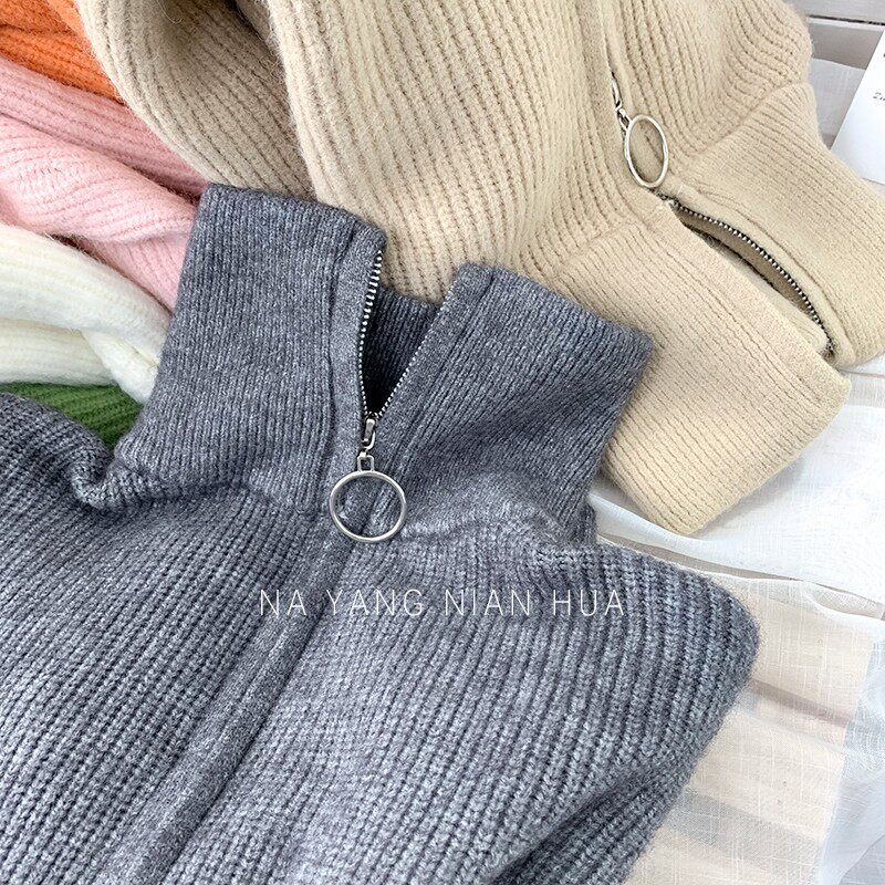 Демисезонный свитер с молнией, ретро трикотажные джинсы с начесом для отдыха, в корейском стиле