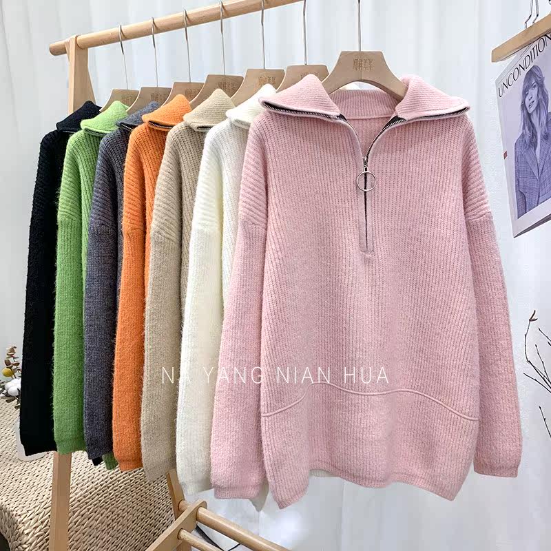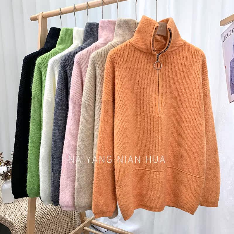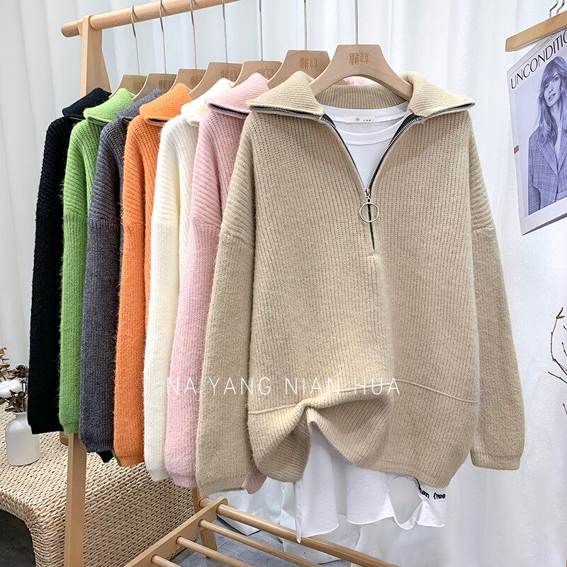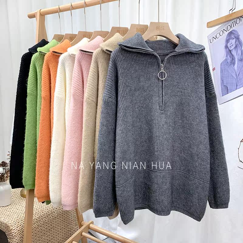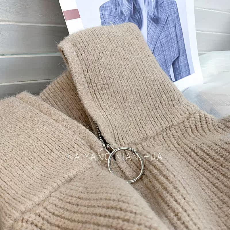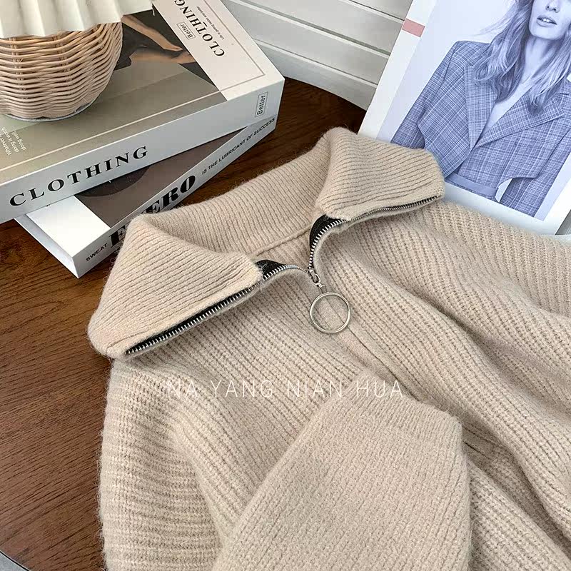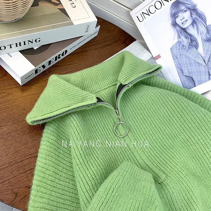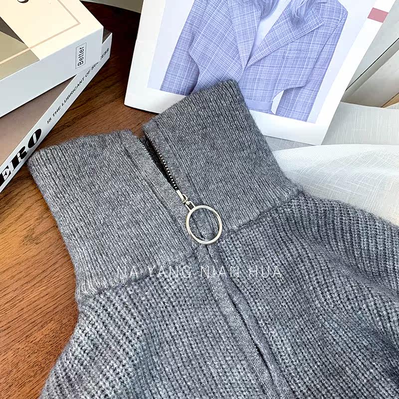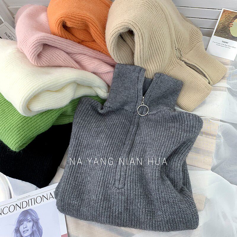 Демисезонный свитер с молнией, ретро трикотажные джинсы с начесом для отдыха, в корейском стиле